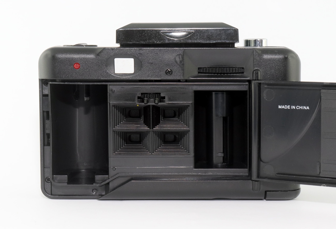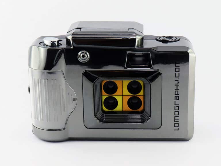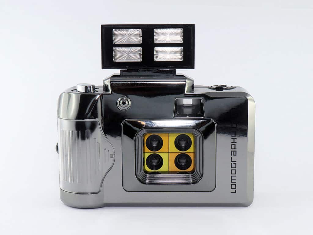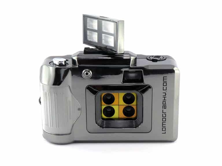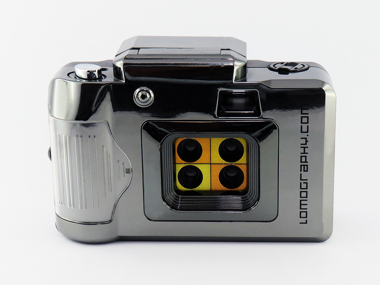 Das dürfte das Flaggschiff der Action-Sampler-Familie von Lomography.com sein: eine „chrom“-glänzende Kunststoff-Kamera mit vier Objektiven, die in einer Sekunde auf einem Negativ des Kleinbildfilms 135 (Aufnahmeformat: insgesamt 24 x 36 mm) vier Aufnahmen nacheinander einfangen. Objektive: jeweils 26 mm Brennweite, jeweils Blende 8. Verschlusszeit: ungefähr 1/100 Sekunde. Entfernungsbereich: 1,20 m bis unendlich. Kameramaße: etwa 12 x 11 x 4,5 cm (über alles). Fernrohrsucher, kein Stativgewinde, kein Blitzlichtanschluss. Made in China. Stromversorgung: 2 x Batterie 1,5 Volt (AA): Ladezeit der Blitze: 7 bis 10 Sekunden.