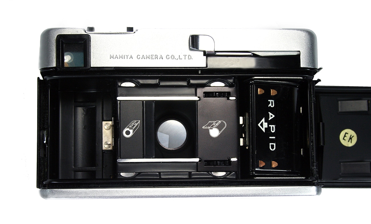 Japanische Halbformat-Sucherkamera (1965) für die Rapid-Patrone mit Kleinbildfilm 135 (Aufnahmeformat 18 x 24 mm). Manuelle Scharfstellung, mechanischer Zentralverschluss bis 1/800 Sekunde, Selbstauslöser, Integralmessung (Belichtungsmesser wabenförmig um das Objektiv gruppiert), Programmautomatik. Objektiv: Mamiya-Tominon 1:1,7/32 mm von Osawa, Zubehörschuh, Blitz-Synchronanschluss.