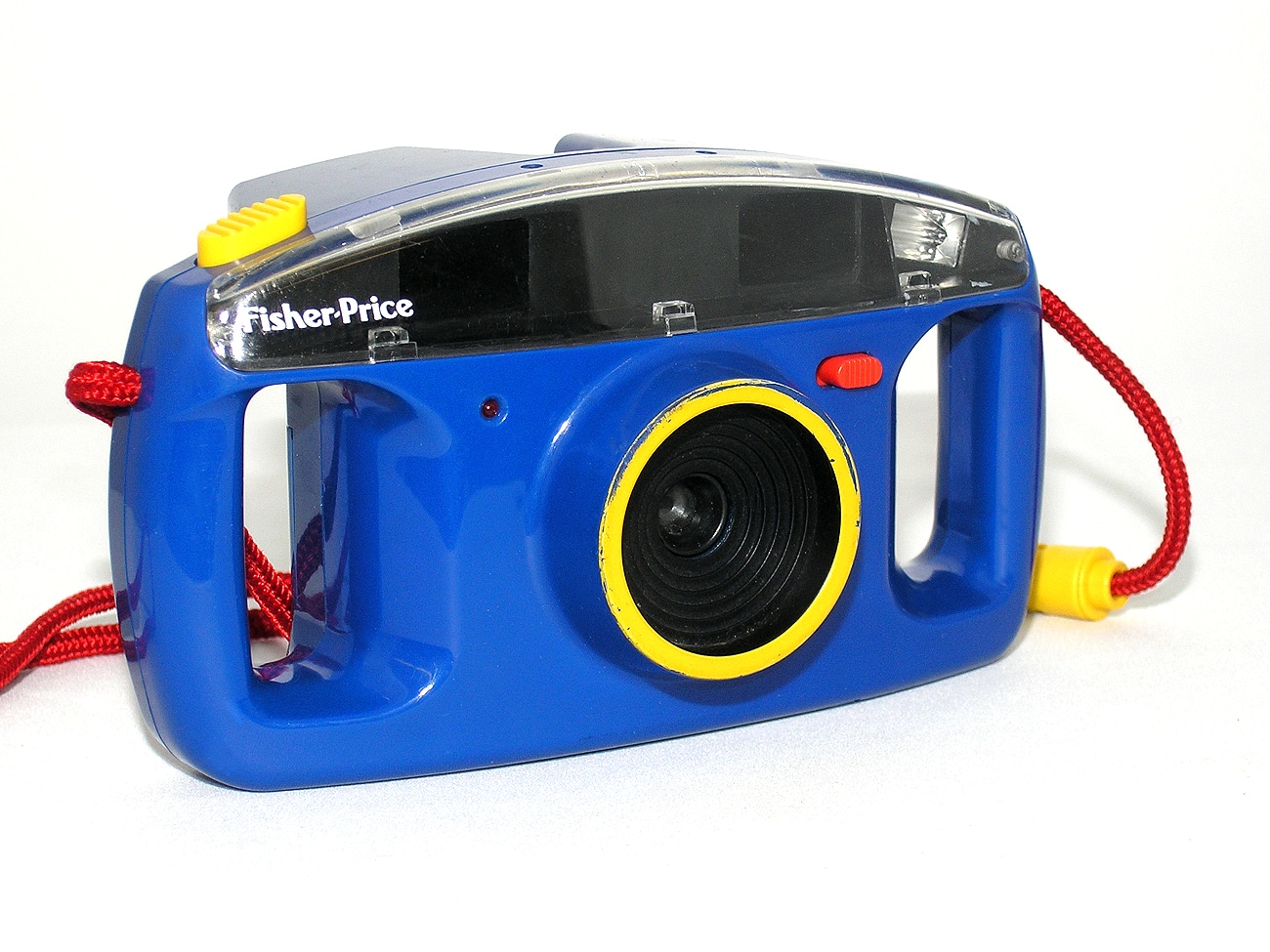 Spielzeugkamera aus Kunststoff von Fisher-Price (Mattel) für den Pocketfilm 110 (Aufnahmeformat 13 x 17 mm), hergestellt ab 1993 in China. Nicht näher bezeichnetes Fixfokus-Objektiv. Besonderheit: zwei Durchsichtsucher. Einfachverschluss, manuelle Belichtungssteuerung. Eingebauter Elektronen-Blitz, manuell zuschaltbar; Tragekordel.