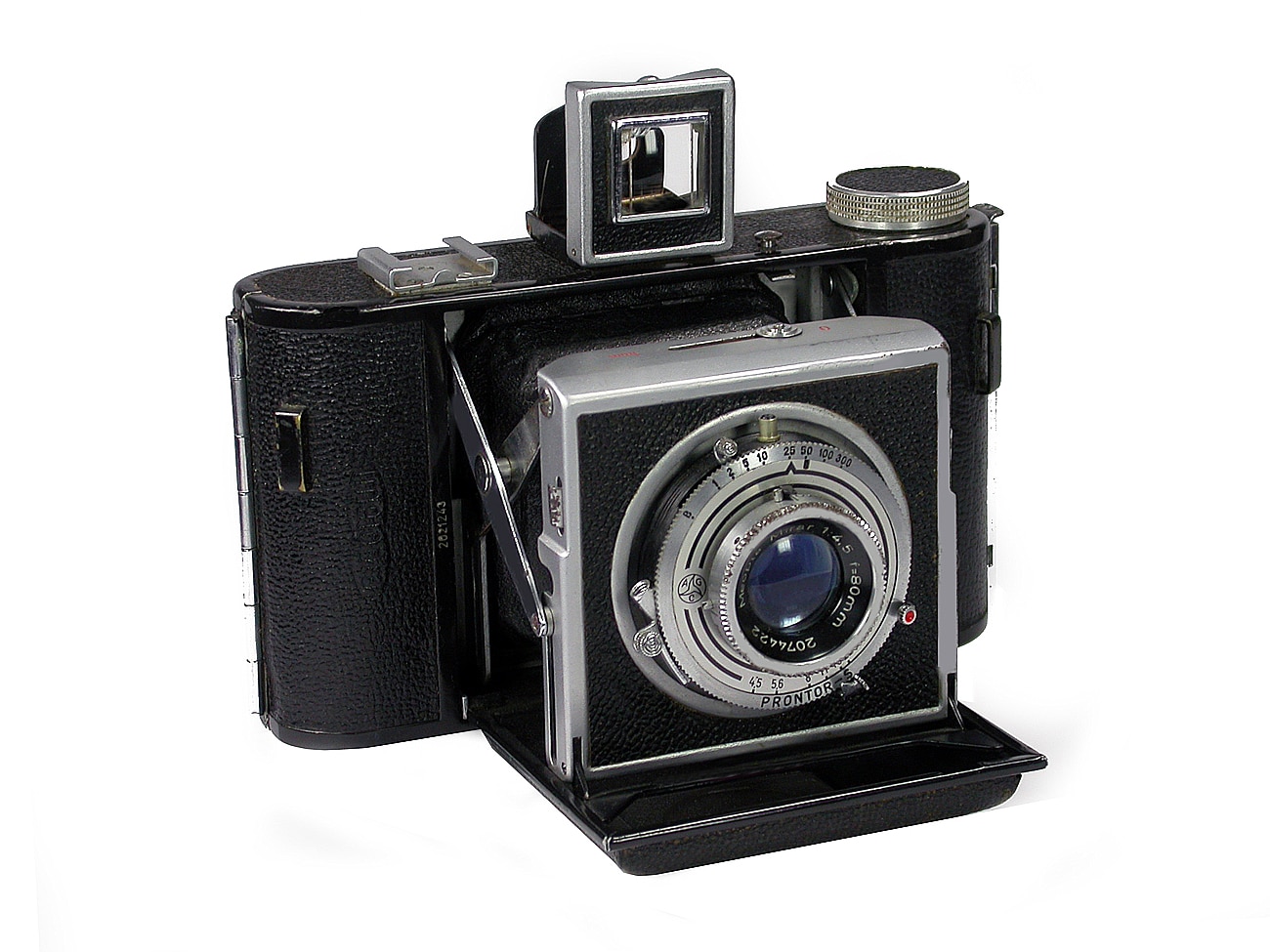Klapp-/Spreizenkamera für den Rollfilm 120/620/B2 (Aufnahmeformat 6 x 6 cm), hergestellt in der Tschechoslowakei ab 1952. Objektiv: Meopta Mirar 1:4,5/80 mm, manuelle Scharfstellung, aufklappbarer Newtonsucher. Mechanischer Zentralverschluss Prontor-S (B, 1 bis 1/300 Sekunde, Selbstauslöser), manuelle Belichtungssteuerung, Blitz-Synchronanschluss, Zubehörschuh.