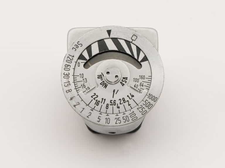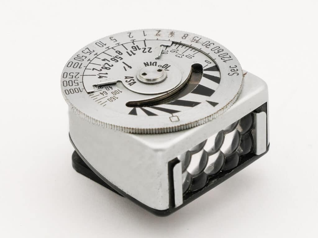 Aufsteckbelichtungsmesser mit Selen-Messzelle der Metrawatt AG, Nürnberg, ab 1954. Durch eine aufsteckbare Diffusorscheibe (nicht mehr vorhanden) wird Lichtmessung möglich, auch ein ansetzbares Verstärkermodul für schwache Lichtverhältnisse war verfügbar. Die Selenzelle erzeugt, abhängig von der Helligkeit, einen elektrischen Strom, der zur Ansteuerung des Zeigerinstruments verwendet wird, eine zusätzliche Stromquelle ist nicht erforderlich. Die Skalenwerte: Zeiten von 1/1.000 Sekunde bis 2 Minuten, Blenden 1,4 bis 22, Empfindlichkeiten DIN 9 bis 24/ASA 6 bis 200. Nachfolgemodell ist der Metraphot 3.