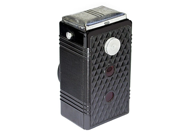 Boxkamera für den Rollfilm 127 (Aufnahmeformat ca. 3 x 4 cm) im Design einer zweiäugigen Spiegelreflexkamera, hergestellt ab 1947 in den USA bei Metropolitan Industries, Chicago. Objektiv: Meniskus Maestar Lens, 57,5 mm Brennweite; Fixfokus. Großer Brillantsucher mit aufklappbarem Lichtschacht. Einfachverschluss (Time, Instant = M, B); manuelle Belichtungssteuerung. Bakelitgehäuse.