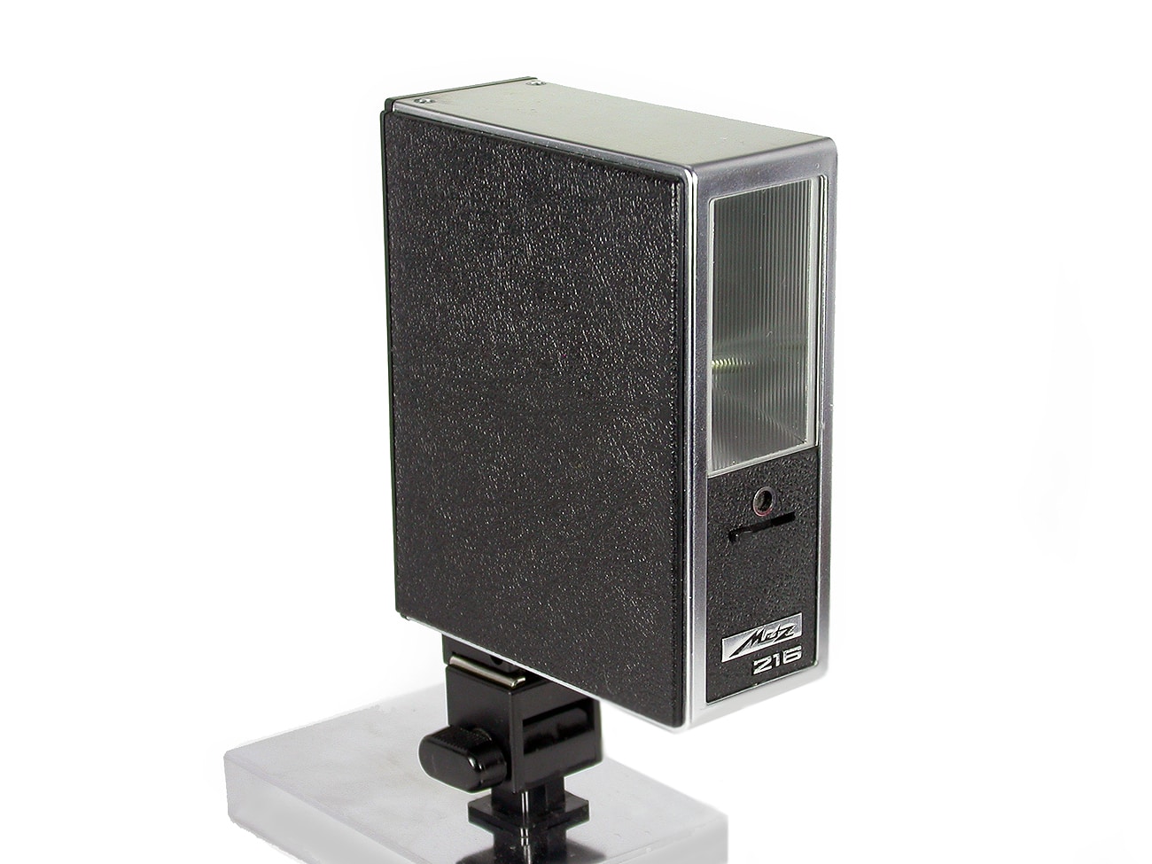 Computerblitzgerät aus Fürth in Bayern, hergestellt in den 1980er Jahren. Starrer Reflektor; Gerät seitlich neigbar. Drei Computer-Blenden, Blendenrechner auf der Rückseite. Leitzahl: vermutlich 27 bei 21 DIN. Synchronisation über Mittenkontakt oder Kabel. Stromversorgung: eingebauter Akku und Netzbetrieb.
