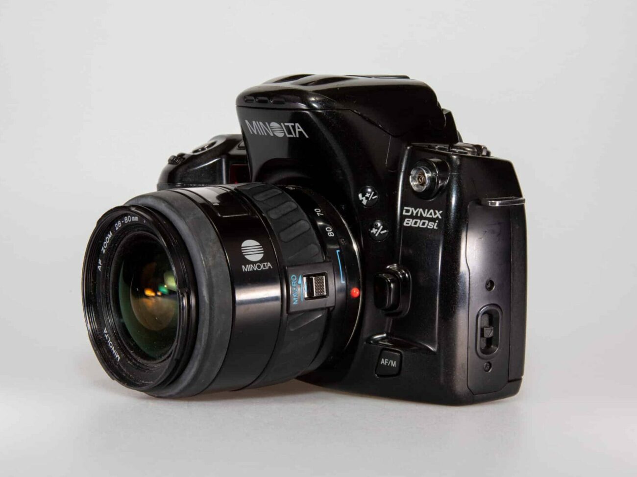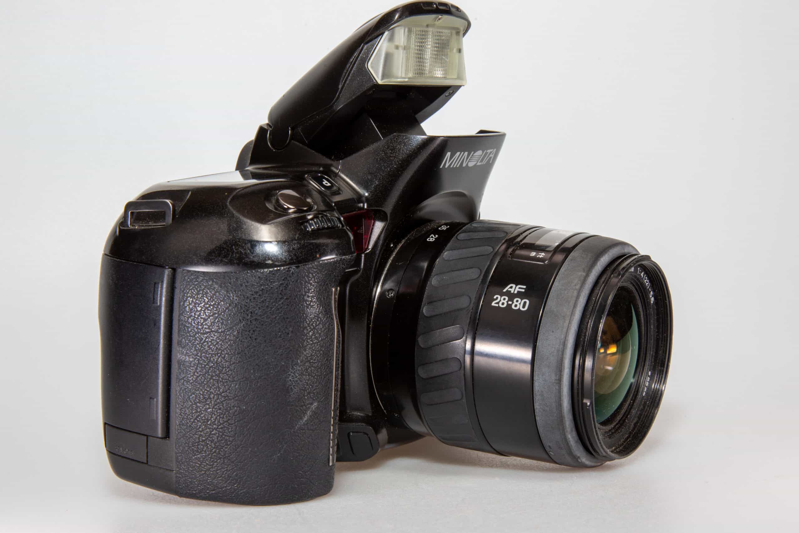 Einäugige Spiegelreflexkamera für den Kleinbildfilm 135 (Aufnahmeformat 24 x 36 mm), hergestellt in Japan in den 1990er Jahren. Hier mit Objektiv Minolta AF Zoom 1:4/28-80 mm mit Makro-Funktion. In der Bedienungsanleitung werden folgende Funktionen und Details aufgelistet: High-Speed-Autofokus mit Wabenfelder-Mehrzonenmessung in 14 Segmenten und Allrichtungs-Prädiktion, eingebautes Blitzgerät mit Zoomreflektor mit maximaler Leitzahl 20 und einem Ausleuchtwinkel für Objektiv-Brennweiten von 24 bis 80 mm; Blitzsynchronisations-Anschlussbuchse mit Einschraubgewinde und Blitzsynchronisation auf den zweiten Verschlussvorhang. Jeder der vier Autofokus-Einzelsensoren kann angewählt werden; Spotmessungen sind möglich. Memory-Funktion auf drei Ebenen, um die am häufigsten verwendeten Kameraeinstellungen abspeichern und später wieder aufrufen zu können.