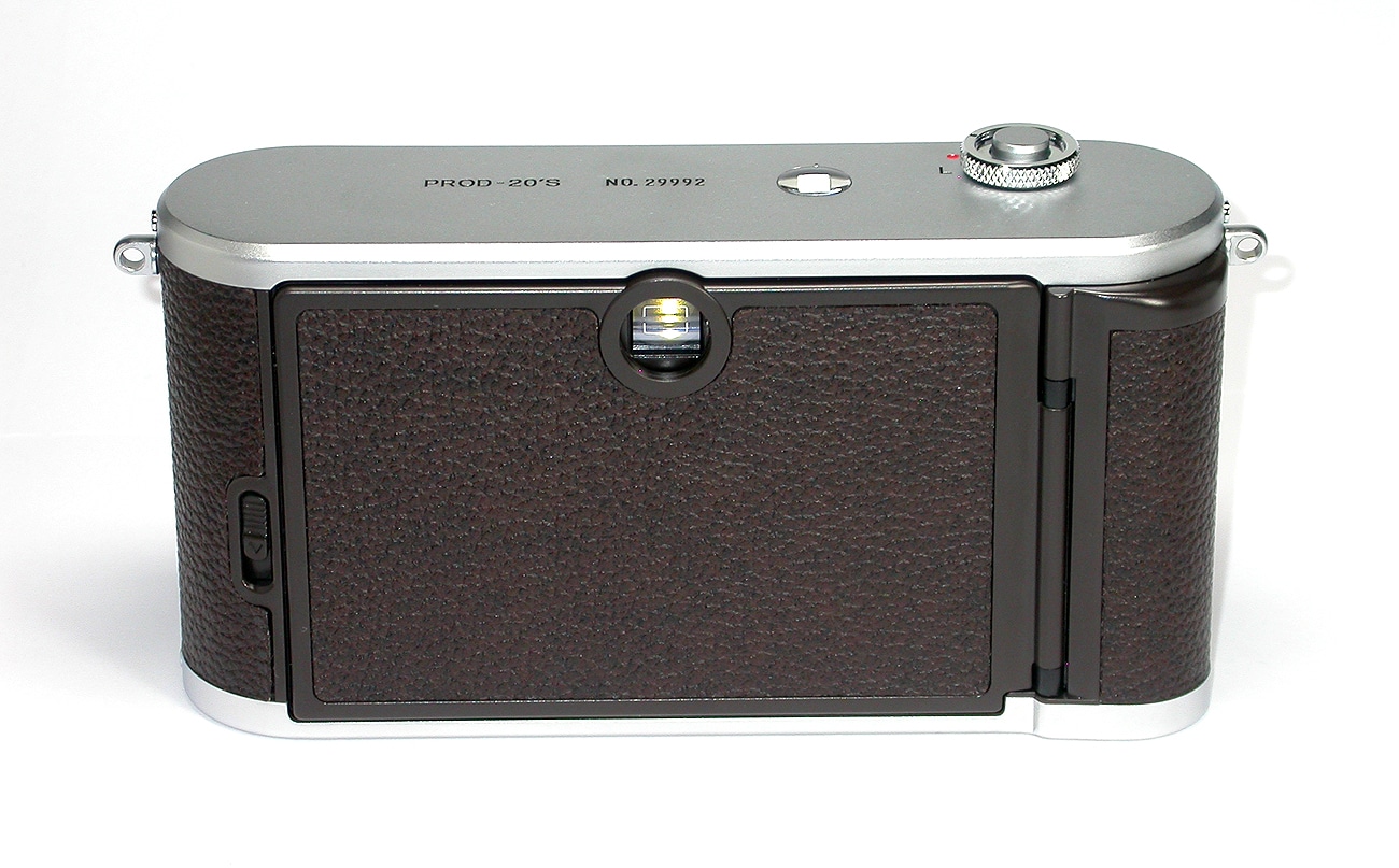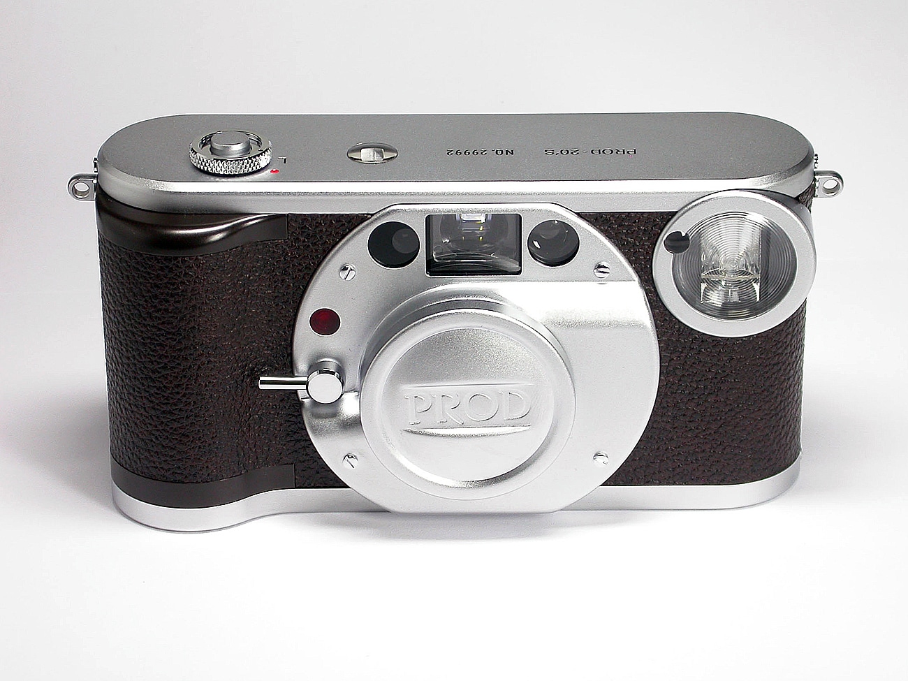 Eine Kleinbild-Kamera (Negativformat: 24 x 36 mm) zum Verlieben: die japanische Minolta PROD 20’S in limitierter Auflage von 20.000 Exemplaren, Baujahr 1990. Unser Museumsexemplar trägt die Schnapszahl 29992 als Seriennummer. Ausstattung: Autofokus, Objektiv: Minolta 1:4,5/35 mm, eingebauter E-Blitz, motorischer Filmtransport, Selbstauslöser (das Hebelchen aus Metall links vom Objektiv).