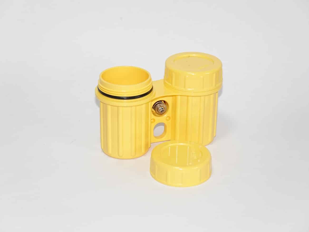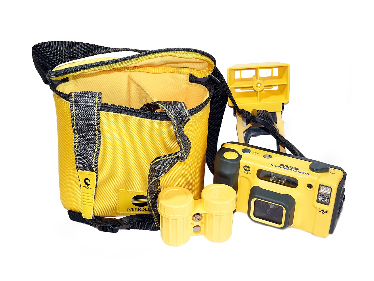 Hier im Set mit weiterem Umhängeriemen, Unterwasser-Rahmensucher und wasserdichtem Behälter für zwei Filmpatronen.