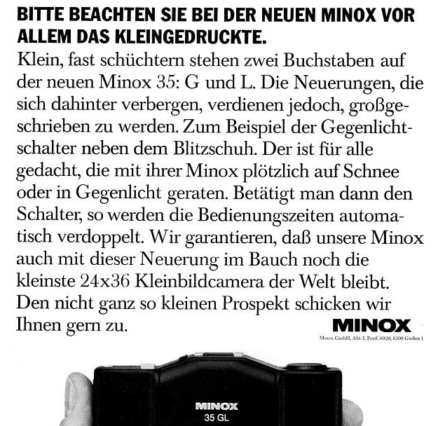 Sucherkamera für den Kleinbildfilm 135 (Aufnahmeformat 24 x 36 mm), hergestellt in der Bundesrepublik Deutschland von 1979 bis 1981. Objektiv: Color-Minotar 1:2,8/35 mm (Scharfstellung ab 0,9 Meter; Schärfentiefenanzeige); Leuchtrahmen-Durchsichtssucher mit Verschlusszeitenanzeige. Elektronisch gesteuerter Verschluss (30 Sekunden bis 1/500 Sekunde; bei aufgesetztem Blitzgerät 1/125 Sekunde; Selbstauslöser), Zeitautomatik, CdS-Belichtungsmesser. Im Sucher Langzeitwarnung und Überbelichtungswarnung, Gegenlichtschalter. Gehäuse: glasfaserverstärktes Makrolon. Stromversorgung: 5,6 Volt-Quecksilberoxid-Batterie (z. B. Varta 4027, Ucar EPX 27, Mallory PX 27 – heute nicht mehr lieferbar).