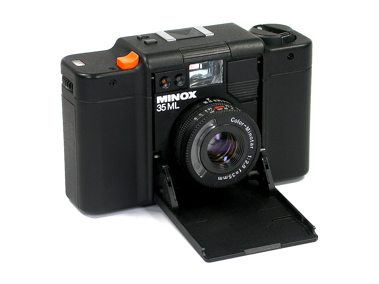 Kompakte Sucherkamera für den Kleinbildfilm 135 (Aufnahmeformat 24 x 36 mm), hergestellt ab 1985. Das Gehäuse weicht von der bisherigen Minox-35-Linie ab und ist eine Neukonstruktion. Objektiv: Color-Minotar 1:2,8/35 mm, versenkbar, Schärfentiefenring. Elektronisch gesteuerter Zentralverschluss, mit Selbstauslöser; Zeitautomatik mit Blendenvorwahl (2,8 bis 16): 1/500 bis etwa 1 Sekunde bei ISO 100/21°. Belichtungs-Programmautomatik: Blende 16 und 1/500 Sekunde bis Blende 2,8 und 1 Sekunde bei ISO 100/21°. Anzeige der Belichtungszeit im Sucher mittels Leuchtdiodenanzeige (1/30, 1/60, 1/125, 1/250, 1/500 Sekunde, nur bei Zeitautomatik). Gegenlichttaste. Langzeit- und Überbelichtungswarnung durch Leuchtdiodenanzeige im Sucher. Messwertspeicher. Batterie: 1 x PX 28 L oder PX 28. Batterietest mittels Testknopf.