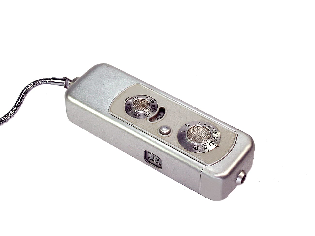 Die wesentlichsten Eigenschaften: Bildformat 8 x 11 mm (verwendet wird unperforierter 9,5-mm-Film in Tageslichtkassetten, die besonders einfach ausgewechselt werden können). Verschluss von 1/2 bis 1/1.000 Sekunde (außerdem B und T) stufenlos durch Fingerdruck einstellbar. Die gesamte Masse des Verschlusses beträgt 0,033 g, er arbeitet als Objektivverschluss verzerrungsfrei. Verschlussspannung, Filmtransport und Zählwerk werden durch Ausziehen der Kamerahülse (wobei Objektiv und Sucher freigelegt werden) betätigt. Verschlusseinstellung bei geöffneter wie geschlossener Kamera.