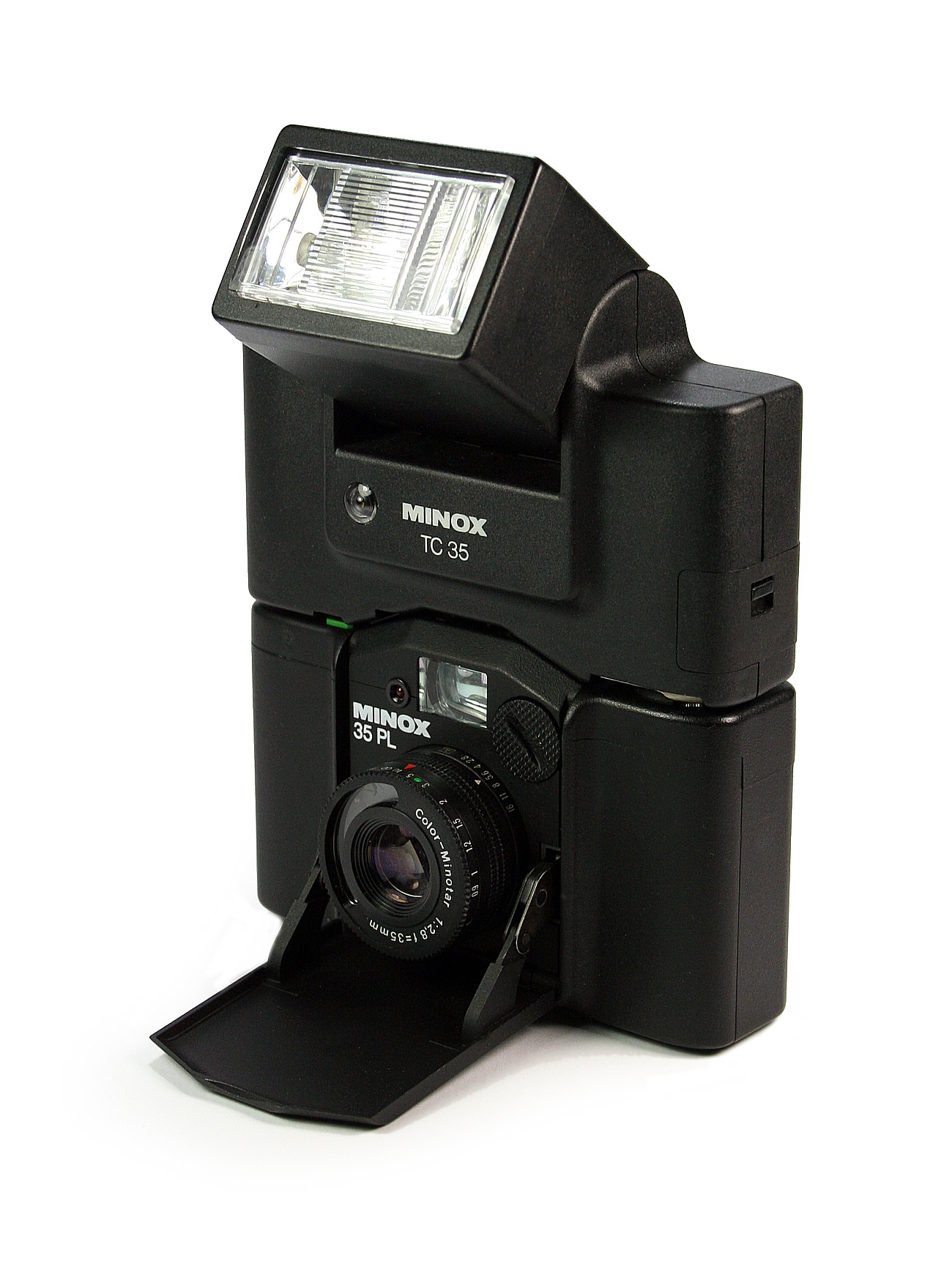 Aus der Bedienungsanleitung: „Das TC 35 ist das leistungsstärkere der beiden Minox 35-Spezialblitzgeräte; es bietet auch in der übrigen technischen Ausstattung zusätzliche Besonderheiten. Leitzahl 26 für 21 DIN/ASA100 (nach DIN 19011). Drei-Blendencomputer mit Arbeitsbereichen bis 9 Meter, 6,50 Meter und 3,25 Meter. Computerbereiche und Arbeitsblenden werden durch Leuchtdioden auf einer Skala angezeigt, die beim Betrieb ohne Computer (Reichweite zum Beispiel mit 27 DIN/ASA 400 bis etwa 18 Meter) als Blendenrechner dient. Die Serienthyristor-Schaltung sorgt – vor allem beim Computerblitzen auf nahe und mittlere Entfernungen – für kurze Blitzfolgezeiten (1 bis 10 Sekunden) und für eine hohe Blitzzahl (80 bis 500 Blitze) pro Batteriesatz (4 Mikrozellen AAA Alkali-Mangan). Der Batterieschonung dient auch die Sparschaltung; sie schaltet das Blitzgerät automatisch aus, wenn längere Zeit nicht geblitzt wird.