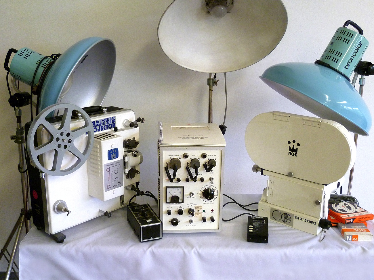 Das 1958 gegründete japanische Unternehmen NAC Image Technology entwickelt und produziert mit mehr als 200 Mitarbeitern spezielle Highspeed-Kamerasysteme und Sonderlösungen wie Flugschreiber und Eyetracking-Systeme. Im Bild rechts eine NAC High Speed Camera für 16-mm-Film mit 300 bis 10.000 Bilder pro Sekunde. Bei der höchsten Bildfrequenz beträgt die Belichtungszeit nur etwa 1/50.000 Sekunde. Eine 120-Meter-Filmrolle mit 16-mm-Film erlaubt eine Aufnahmezeit von maximal 2,4 Sekunden.