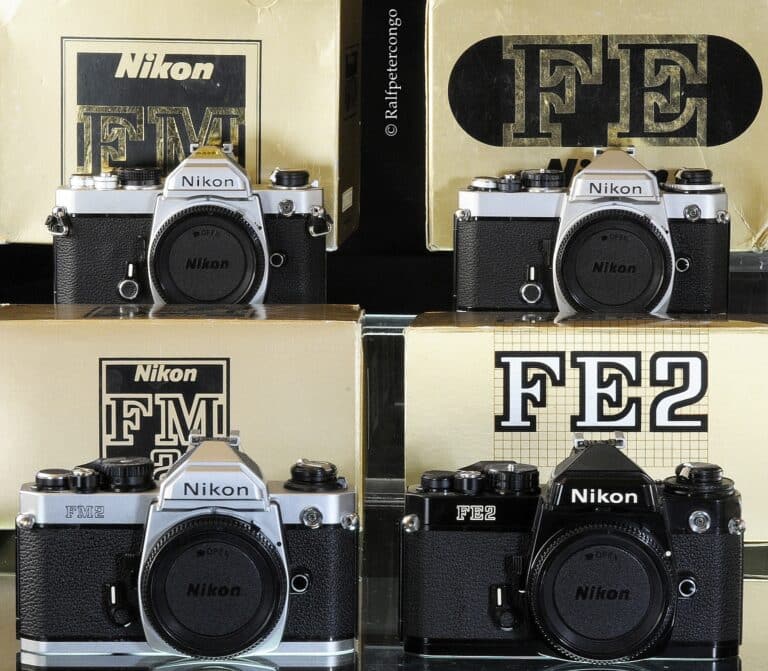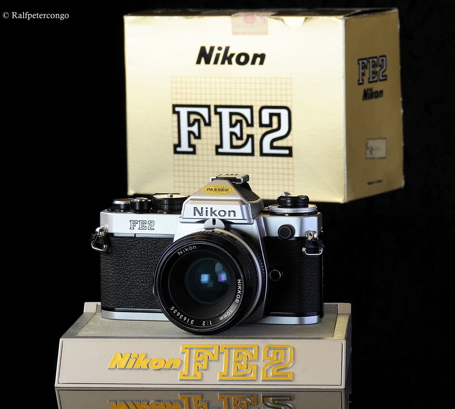 Auch die Nikon FE wurde mit einem neu entwickelten Verschluss von Seiko, der eine Belichtungszeit von 1/4.000 Sekunde und eine Blitzsynchronzeit von 1/250 Sekunde erlaubte, zur Nikon FE 2 aufgewertet. Der Verschluss bestand aus Titanlamellen mit einem, zur Stabilisierung, eingeprägten Wabenmuster. Für die Belichtungsmessung hatte sie Siliziumzellen, manueller Nadelabgleich, Messwertspeicher, eine Belichtungskorrektur mit +/- 2 Blendenwerten, Verschlusszeiten- und Blitzbereitschaftsanzeige. Die Filmempfindlichkeit war einstellbar von 12 bis 4.000 ASA. Der Sucher war nicht auswechselbar und der Spiegel konnte nicht hochgeklappt werden. Der AI-Fühler war nicht mehr hochklappbar. Jedoch konnte die Mattscheibe ausgetauscht werden. Ein Selbstauslöser sowie die Möglichkeit der Mehrfachbelichtung bot sie auch. Zusätzlich gab es einen mechanischen Knopf für die Tiefenschärfekontrolle der gewählten Arbeitsblende. Das Messwerk arbeitete erst ab der Bild Nummer 1. An der Unterseite des Gehäuses saßen die Kontakte und die mechanische Kupplung für den neuen und sehr kompakten Motortyp, und das kleine Batteriefach für zwei der damals üblichen Quecksilberzellen.