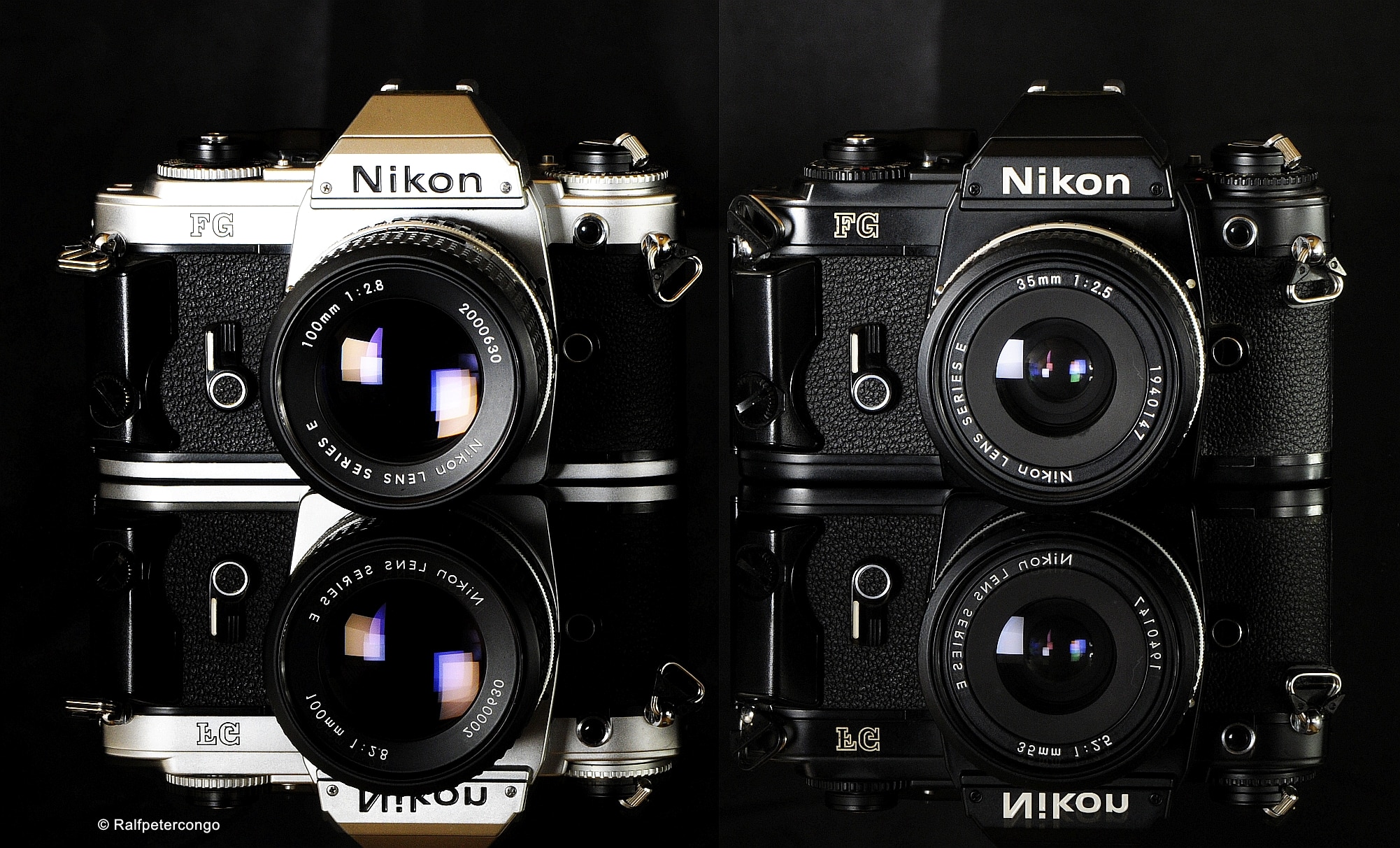 Das Nikon FG ist eine 35-mm-Kleinbild-Spiegelreflexkamera mit Nikon F-Bajonett-Wechselobjektiv. Es wurde von 1982 bis 1986 hergestellt. Die FG war der Nachfolger der Nikon EM-Kamera von 1979 und der Vorgänger der Nikon FG-20 von 1984. Diese drei Kameras umfassten Nikons erste Familie kompakter 35-mm-SLR-Kameragehäuse. Als Nachfolger der EM wurde die FG zusätzlich mit einer Programmautomatik (AE), TTL-Blitzsteuerung (Synchronzeit 1/90 Sekunde) und manuell einstellbaren Verschlusszeiten, von 1-1/1.000 Sekunde, ausgestattet. Der Verschluss wurde elektronisch angesteuert, hatte aber eine, unabhängig von einer Batterie, mechanische Zeit von 1/90 Sekunde. Ein Belichtungskorrekturrad (–2 EV bis +2 EV) war ebenfalls verbaut und ein, abschaltbares, akustisches Warnsystem wies auf Unter- oder Überbelichtung hin. An der Frontseite des Gehäuses befand sich eine für den Motorantrieb abschraubbare Griffleiste. Das Gehäuse wurde aus einer Kupfer-Siluminium-/Aluminiumlegierung hergestellt. Die Gehäuseoberkappe, die Bodenplatte und die Bajonettabdeckung waren aus Polycarbonat. Um das Gehäuse herum war ein Kunstlederbezug aufgeklebt. Die Nikon FG wurde in chrom und in schwarz angeboten. Das Gewicht betrug nur 490 Gramm. Das Motorenangebot wurde um ein Modell erweitert. Mit der Einführung der Nikon FG die Möglichkeit, die Motoren MD-E und MD-14 anzuschließen. Dazu gab es die Blitze SB-E und SB-14, und eine auswechselbare Datenrückwand MF-15.