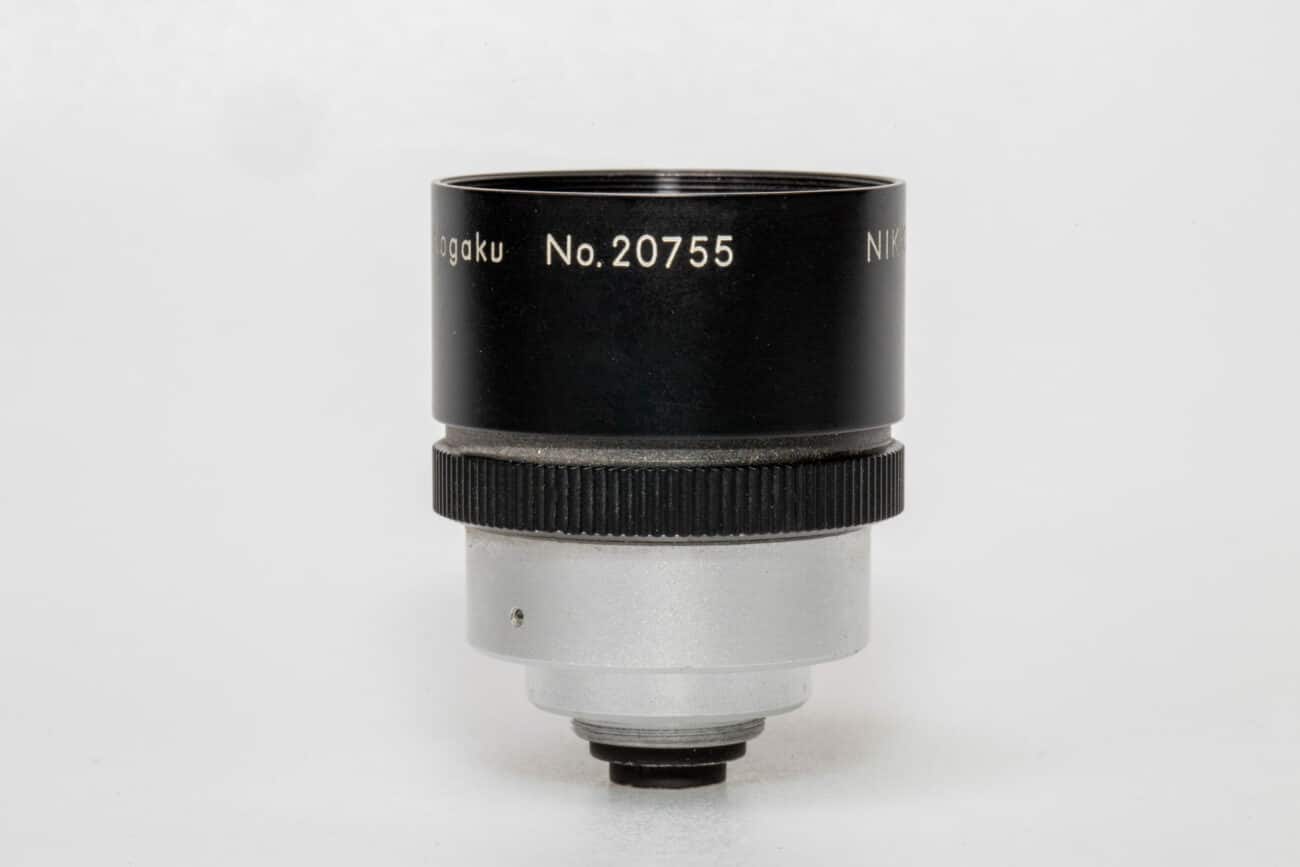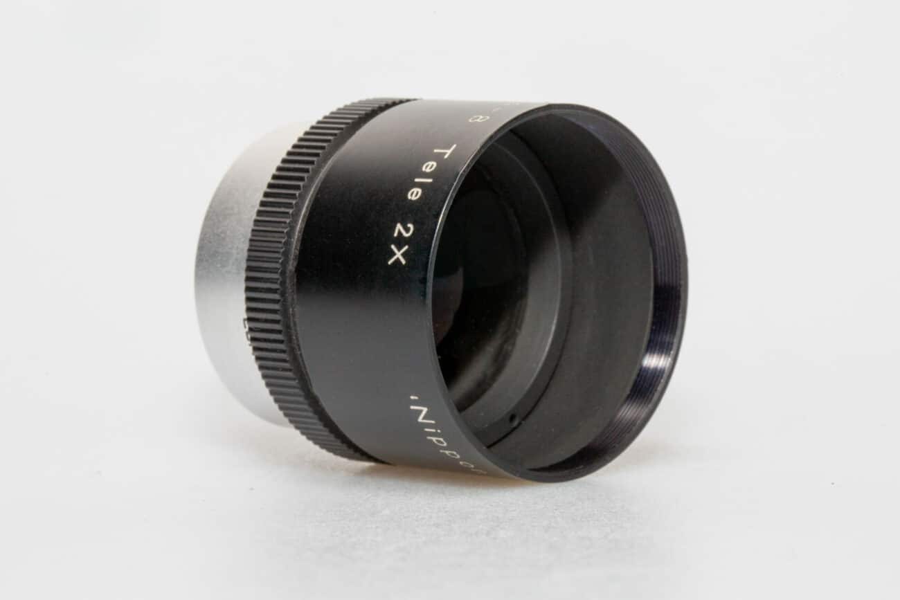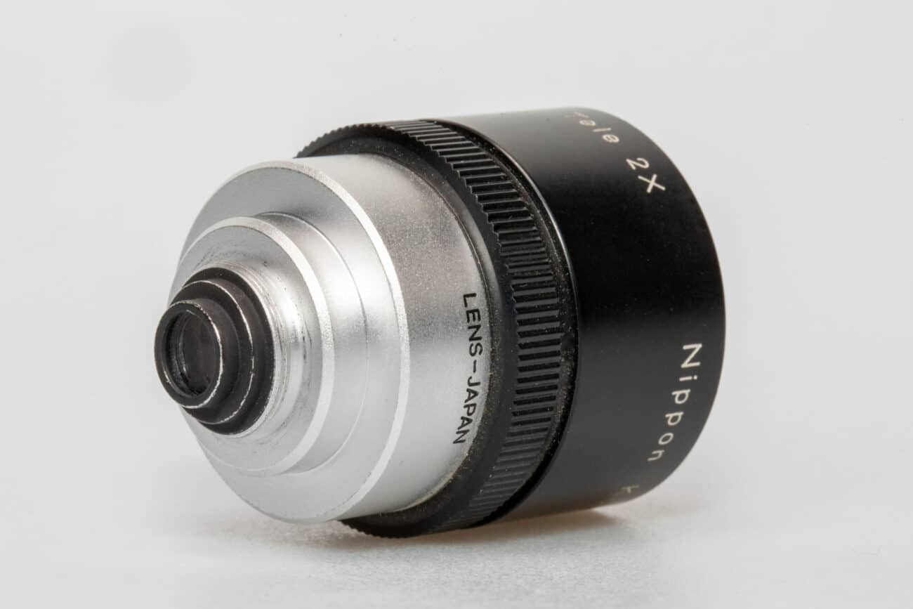 Telekonverter für die Schmalfilmkamera Nikkorex-8, hergestellt in Japan bei Nippon Kogaku (ab 1988 Nikon) seit den frühen 1960er Jahren. Schraubanschluss.