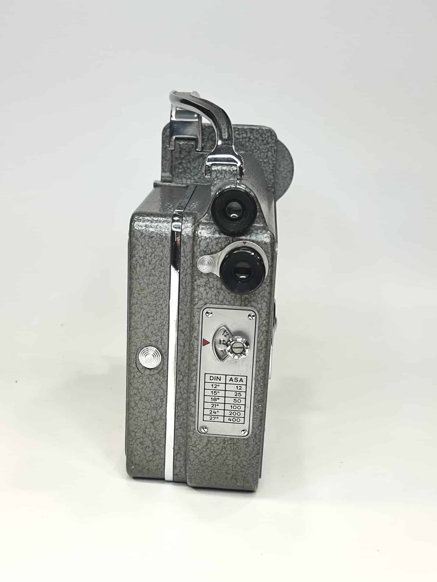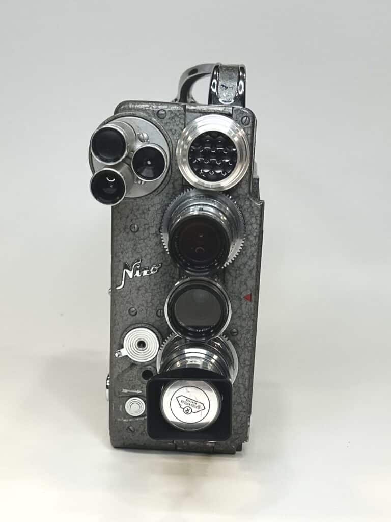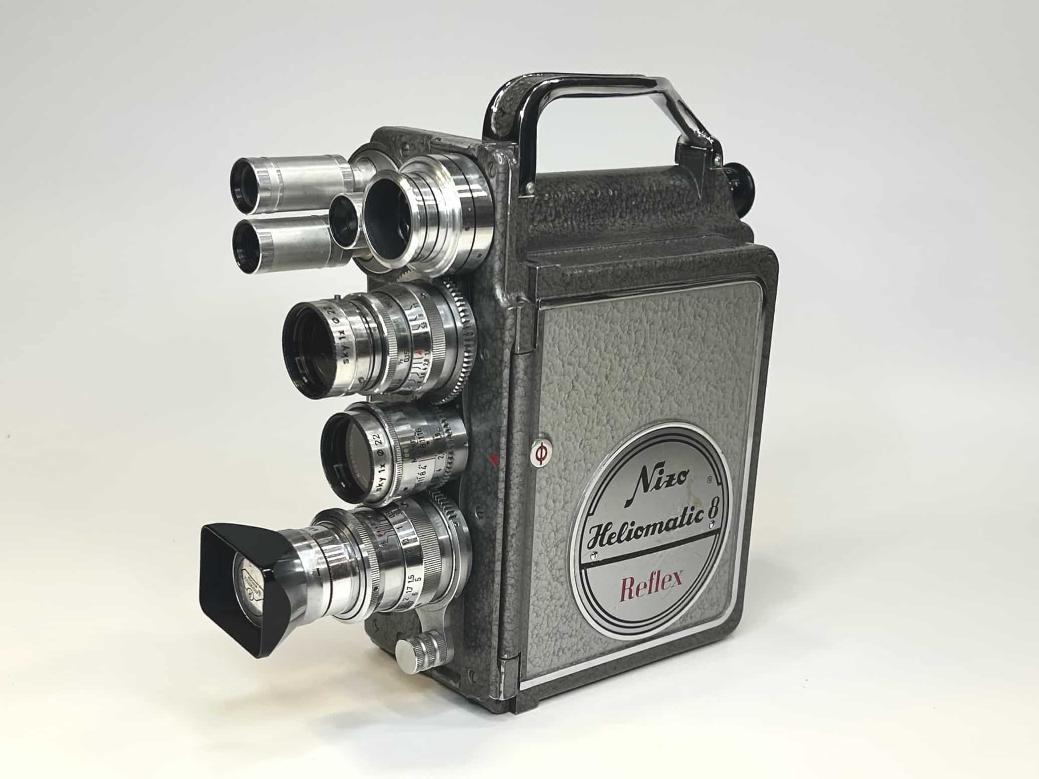 Die Nizo Heliomatic 8 Reflex ist eine klassische 8-mm-Filmkamera, die um 1960 von der Münchner Firma Niezoldi & Krämer (Nizo) gefertigt wurde. Die Kamera arbeitet mit Doppel-8-Film (Standard-8) auf 7,5-Meter-Tageslichtspulen und wird über ein Federwerk angetrieben. Dabei lassen sich verschiedene Bildfrequenzen zwischen 1 und 48 Bildern pro Sekunde einstellen, was kreative Zeitlupen- oder Zeitrafferaufnahmen ermöglicht.