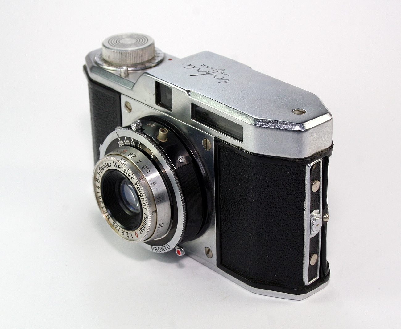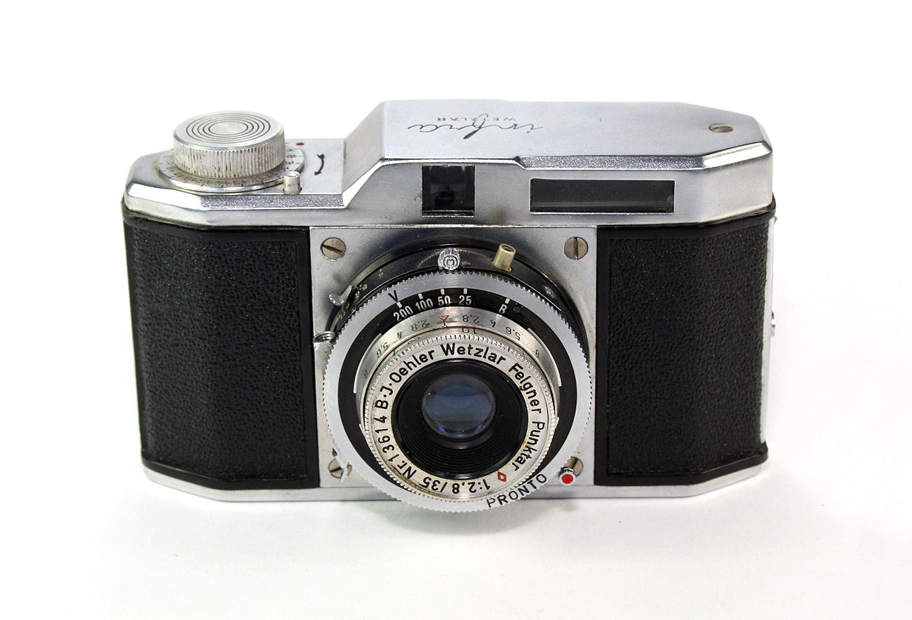 Sucherkamera (1950) von Feingerätebau Bernhard Julius Oehler, Wetzlar, für den Kleinbildfilm 135 (Aufnahmeformat 24 x 24 mm) in Agfa-Karat- oder Rapid-Patronen). Mechanischer Pronto-Zentralverschluss (B sowie 1/25 bis 1/200 Sekunde). Manuelle Belichtungssteuerung. Objektiv: Felgner Punktar 1:2,8/35 mm, ein Dreilinser (Seriennummer: 13614), der prinzipiell auswechselbar wäre (Schraubgewinde). Hersteller war vermutlich Will in Wetzlar. Zusatzobjektive sind aber nicht bekannt. Gehäuse aus Metall und Kunststoff/Bakelit. Drahtauslöser, Selbstauslöser, Stativgewinde 3/8 Zoll. Blitzsynchronisation über Kabel. Besonderheit: Eingebauter optischer Belichtungsmesser (das längliche Fenster im oberen Bild rechts vom Sucher).