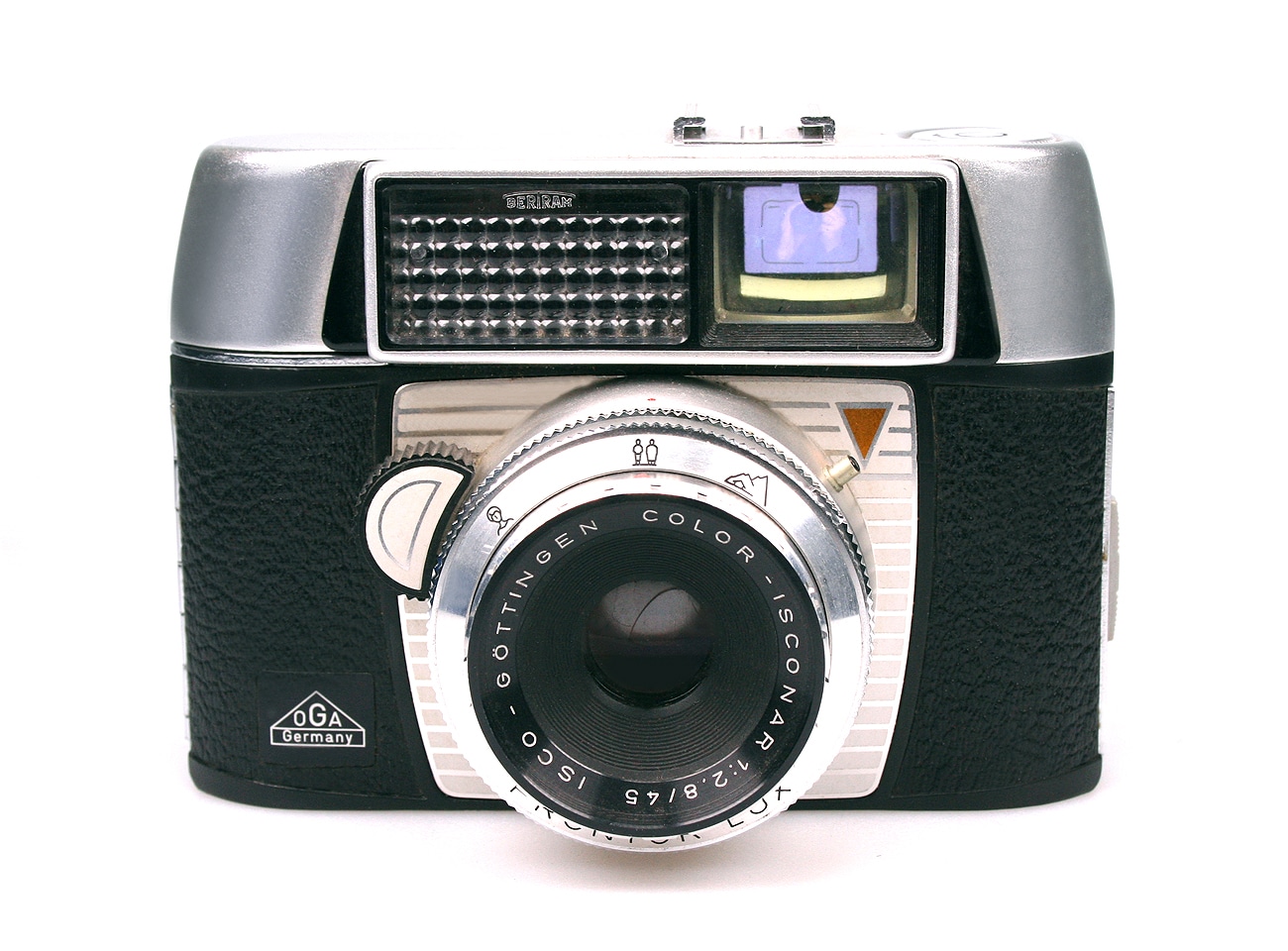 Kleinbild-Sucherkamera (Aufnahmeformat 24 x 36 mm) aus den 1960er Jahren. Objektiv: Color-Isconar 1:2,8/45 mm von ISCO-Göttingen, Entfernungseinstellung nach Piktogrammen, mit Prontor-Lux-Verschluss und eingebautem, gekuppeltem Belichtungsmesser von Bertram: Jeder Filmempfindlichkeit ist eine bestimmte Verschlusszeit von 1/30 bis 1/500 Sekunde zugeordnet; die Blende wird dann automatisch nach dem Messwert der Selenzelle eingestellt.