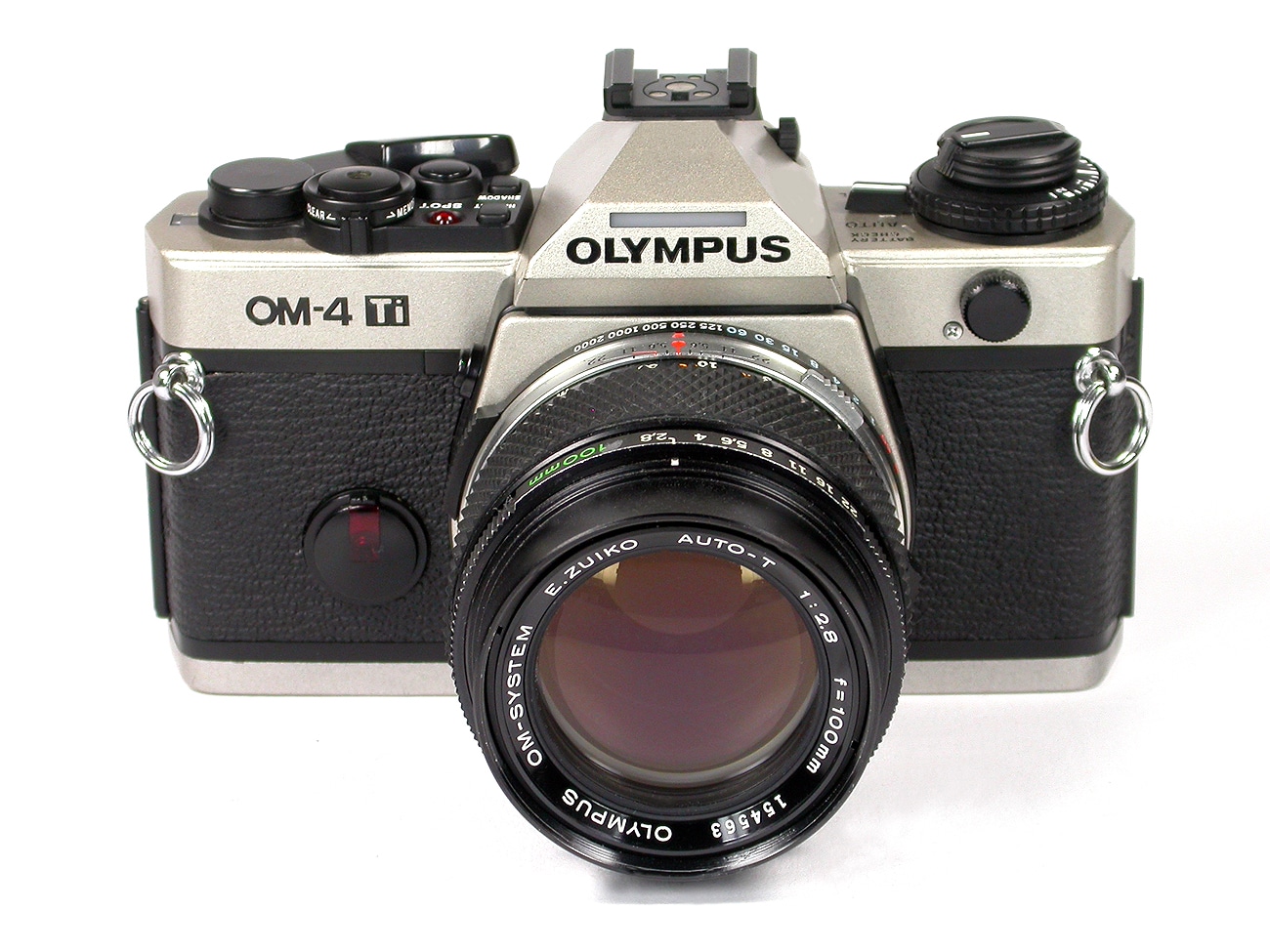 Einäugige Spiegelreflexkamera für den 135er Kleinbildfilm (Aufnahmeformat 24 x 36 mm), hergestellt ab 1986. Manuelle Scharfeinstellung, Prismensucher, wechselbare Einstellscheibe, elektronischer Schlitzverschluss (manuell einstellbar: B, 1 bis 1/2.000 Sekunde). Manuelle Belichtungssteuerung und Zeitautomatik, mittenbetonte Messung und Spotmessung. TTL-Spot-Meßspeicher-System (Lichtwertspeicher mit automatischer Mittelwertbildung bei Multi-Spot-Messung; mit bis zu 60 Minuten Speicherzeit). Motor Drive oder Winder mit bis zu 5 Bilder/Sekunde ansetzbar. Objektivanschluss: Olympus OM-Bajonett, hier mit Olympus E. Zuiko Auto-T 1:2,8/100 mm. Rückwand: anscharniert, auswechselbar gegen Recordata Back (Daten-Rückwände) oder 250-Bilder-Filmrückwand. Damals auch in Schwarz lieferbar.