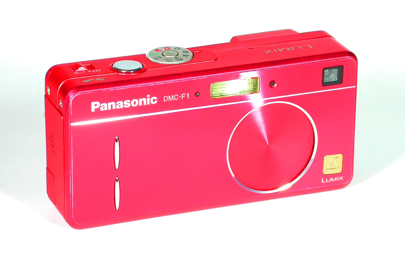 Digitalkamera mit Leica-Objektiv, 2003/2004. 3,2 Megapixel, Autofokus, 1/2,5 Zoll CCD-Sensor, Cropfaktor: 6,0. Bildauflösung: 2.048 x 1.536 Pixel, JPG-Format. Verschlusszeiten: 8 bis 1/2.000 Sekunde. Mehrfeld-, Spot- und mittenbetonte Messung. Bis zu 4 Bilder pro Sekunde, Serienbildschaltung. Objektiv: Leica DC Vario-Elmarit (asphärisch) 1:2,8-4,9/5,8-17,4 mm (35-105mm bezogen auf Kleinbildformat). Auflösung: 2.048 x 1.536 Pixel, 1.600 x 1.200 Pixel 1.280 x 960 Pixel, 640 x 480 Pixel. Dreifaches optisches Zoom, ISO: 50 bis 400, optischer Sucher und 1,5-Zoll-TFT-LCD-Monitor mit 114.000 Bildpunkten. Videomodus (MOV) mit 320 x 240 Pixeln. Speichermedien: MMC- und SD-Karte. Eingebauter Blitz. Gewicht betriebsbereit: 205 Gramm. Die Panasonic Lumix DMC-F 1 hat ein Metallgehäuse, es gab sie in verschiedenen Farben. Stromversorgung: 1 x Lithiumionen-Akku DMW-BCA7 (680 mAh; 3,6 Volt).