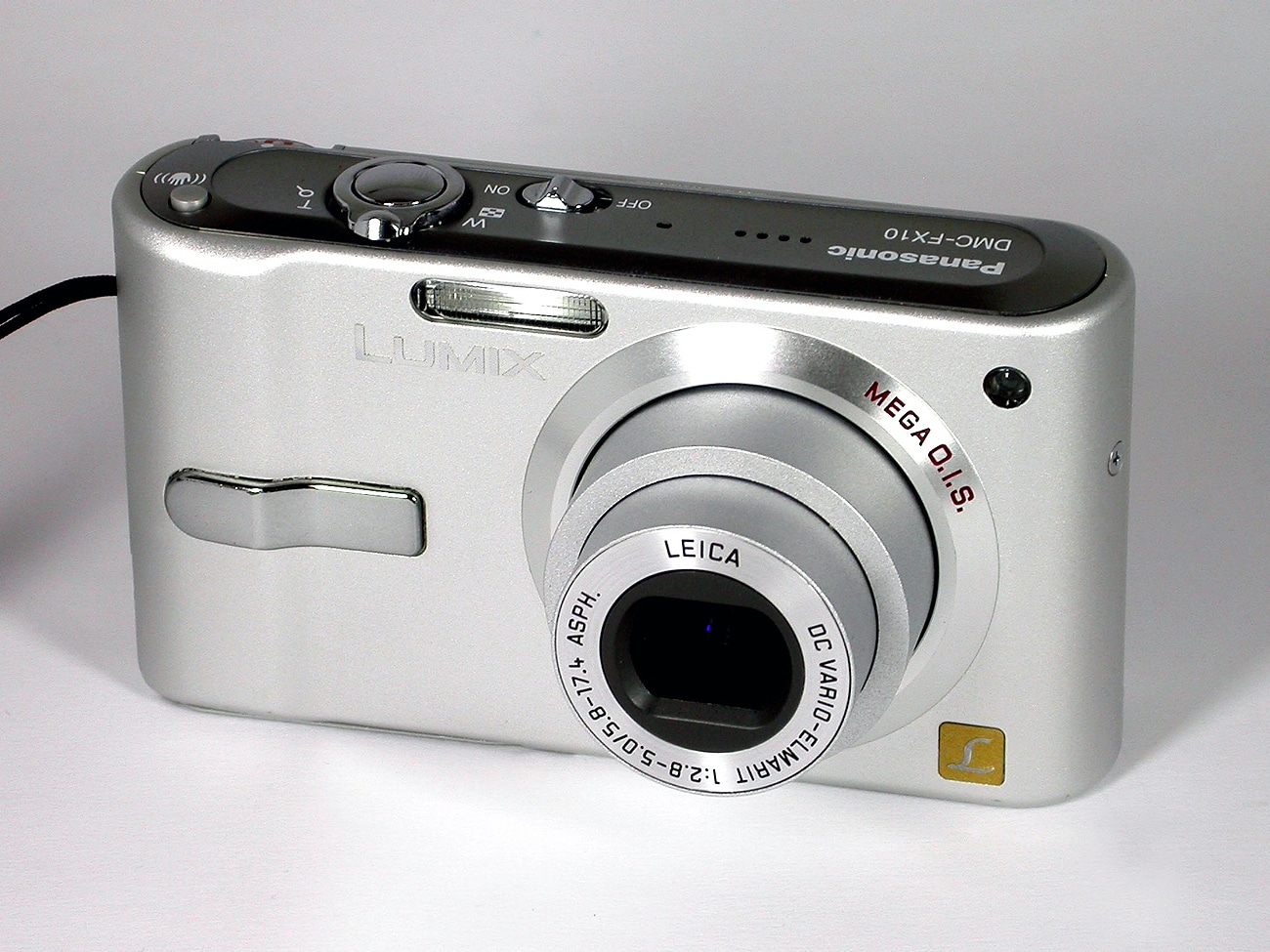 Kompakte Digitalkamera von Panasonic (Matsushita Electric Industrial Co., Ltd.), Osaka, Japan, 2007. Hübsche kleine Kamera (etwa 9,5 x 5 x 2,5 cm) mit guten Eigenschaften: Leica-Dreifach-Zoom DC Vario-Elmarit 1:2,8-5,0/5,8-17,4 mm mit asphärischen Linsen (entspricht 35 bis 105 mm bei Kleinbildformat). Zusätzlich digitaler Zoom. Eingebauter Bildstabilisator (zwei Stufen), Blitz, Dutzende von Belichtungsprogrammen. Schöner großer LCD-Bildschirm: etwa 5 x 3,7 cm. Eingebauter Speicher (27 MB) und SD-Cards (8 MB bis 2 GB) bzw. SD-HC-Cards (4 GB) verwendbar, ebenfalls MultiMediaCards (eingeschränkt).
