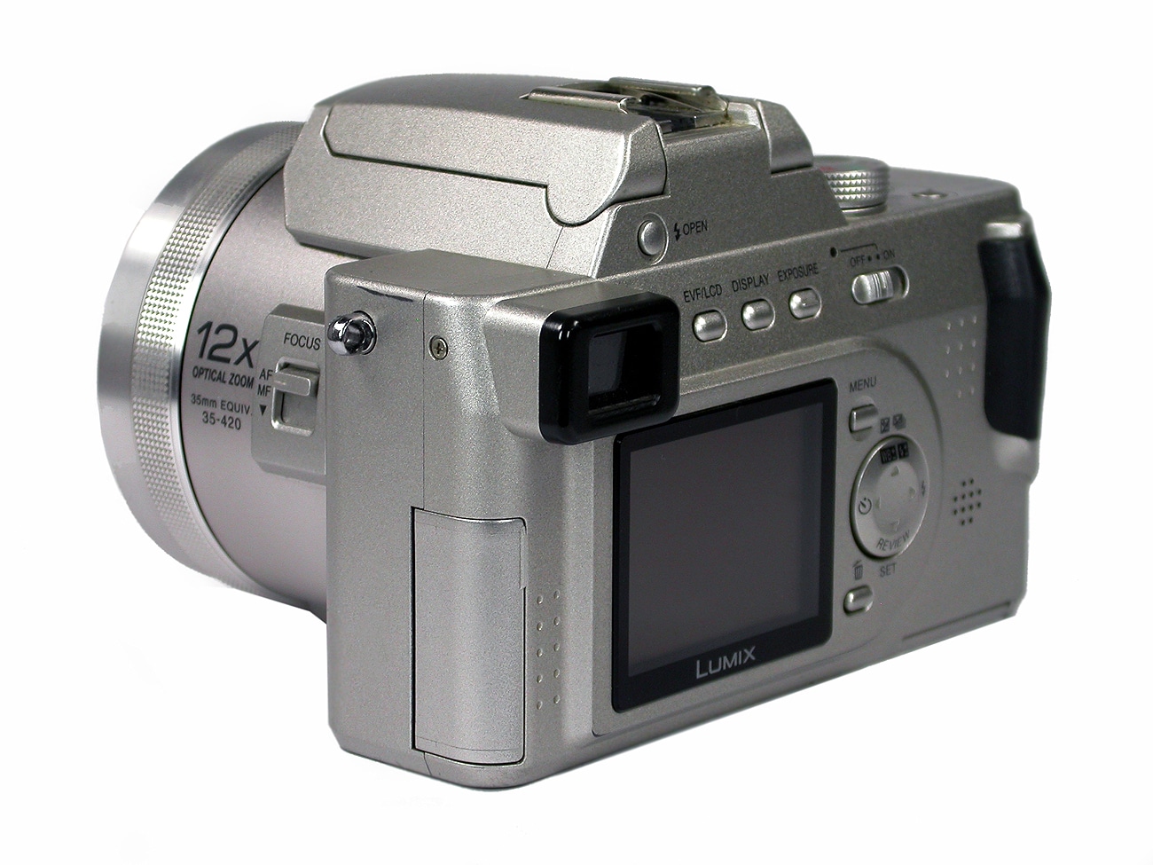 Hochwertige Bridgekamera (2004) mit 4 Megapixel und sensationeller Leica-Optik mit Autofokus: Zwölffaches optisches Zoom bei durchgehend größter Blendenöffnung 2,8. CCD-Sensor, 1/2,5 Zoll, Cropfaktor: 6,0. Verschlusszeiten: 8 bis 1/2.000 Sekunde. Mehrfeld- und Spotmessung, manuelle Belichtungssteuerung, Blenden-, Zeit- und Programmautomatik. Serienbildschaltung mit bis zu vier Bildern pro Sekunde (maximal 7 Bilder). Objektiv: LEICA DC Vario-Elmarit Aspherical 1:2,8/6-72 mm (35-420 mm bezogen auf Kleinbildformat). 13 Elemente in 8 Gruppen. ISO: 50 bis 400. Optischer Bildstabilisator (OIS). Neben dem zwölffachen optischen auch dreifaches Digitalzoom. Fokus: Auto/ Makro/manueller Fokusring; Fokusbereich: normal: 30 cm bis unendlich, Makro/A/S/M: 5 cm bis unendlich. Bildformat: JPEG, Auflösung: 2.304 x 1.728 Pixel , sechs Abstufungen, HDTV- Auflösung (16: 9): 1.920 x 1.080 Pixel. Videomodus (QuickTime) 320 x 240 Pixel, 30 Bilder pro Sekunde. Menü mit sieben Sprachen, deutsch wählbar. Eingebauter Lautsprecher, Speichermedien: SD Memory Card, und MultiMedia Card. Stromversorgung: 1 x Li-Ion Akku (7,2 Volt/680 mAh), AC-Adapter (110-240 Volt). Gewicht betriebsbereit: 580 Gramm.