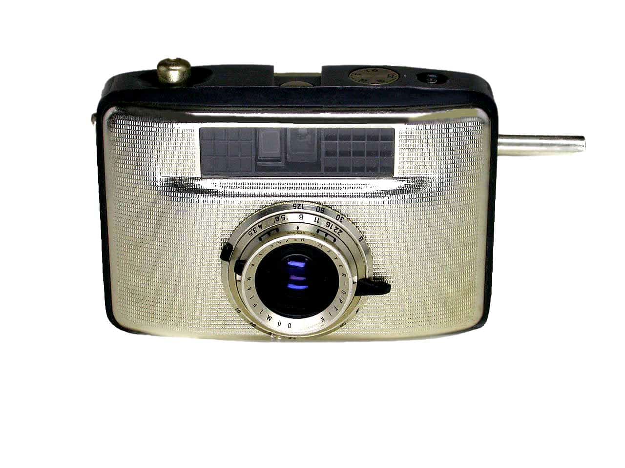 Halbformat-Sucherkamera für Schnellladekassetten (Kleinbildfilm in der DDR-eigenen Version eines Kassetten-Systems, ähnlich Agfa-Rapid, für 24 Aufnahmen im Format 18 x 24 mm) aus der früheren DDR, gebaut 1961 und 1962 bei Welta Kamerawerke/VEB Pentacon, mit eigenwilligem Transportmechanismus: Die Schubstange rechts wurde in die Kamera gedrückt und sprang nach der Aufnahme wieder heraus; so konnte ein drehendes Getriebe eingespart werden. Dieses Modell gab es in verschiedenen Farbkombinationen von Rahmen und Vorder- sowie Rückseite. Eingebauter Belichtungsmesser; die in der Bedienungsanleitung angepriesene „Belichtungsautomatik“ ist eine im Sucher ablesbare, manuelle Nachführ-Belichtungsmessung. Objektiv: Meyer-Optik Görlitz Domiplan 1:3,5/30 mm. Leuchtrahmensucher mit Parallaxenmarken für Nahaufnahmen. Mechanischer Zentralverschluss (B, 1/30 bis 1/125 Sekunde). Qualitätszeichen der DDR: eine „1“ in einem Dreieck; was bedeutete. „Mit den Weltmarkterzeugnissen vergleichbar“.