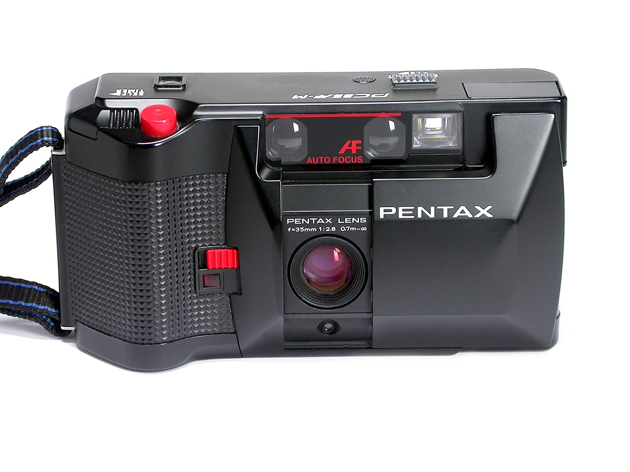 Kompaktkamera für den Kleinbildfilm 135 (Aufnahmeformat 24 x 36 mm), hergestellt in Japan ab 1984. Objektiv: Pentax 1:2,8/35 mm; Autofokus. Elektronisch gesteuerter Hinterlinsenverschluss (1/8 bis 1/430 Sekunde; Selbstauslöser). Mittenbetonte Messung, Belichtungsautomatik (Programmautomatik), Gegenlichttaste. Motorischer Filmtransport. Eingebauter Elektronenblitz (Leitzahl 11, ISO 100/21°). Einstellung der Filmempfindlichkeit über DX-Codierung oder manuell. Einschalten der Kamera durch Öffnen des Objektivschiebers.