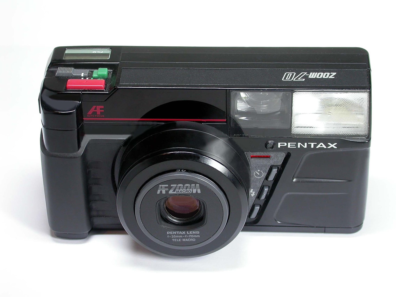 Kompaktkamera für den Kleinbildfilm 135 (Aufnahmeformat 24 x 36 mm), hergestellt in Japan ab 1986. Objektiv: Pentax Lens 1:3,5-1:6,7/35-70 mm Tele-Macro, Motorzoom, Infrarot-Autofokus, Diodenanzeige am Okular für Autofokus-Speicher und Blitzbereitschaft. Leuchtrahmen-Zoom-Sucher mit Autofokus-Messfeldmarkierung und Parallaxenanzeige im Nahbereich. Elektronisch gesteuerter Zentralverschluss (1/40 bis 1/250 Sekunde; Selbstauslöser). Programmautomatik; Gegenlichtkorrektur. Eingebauter Zoom-Elektronenblitz; LCD-Display; motorischer Filmtransport; Einstellung der Filmempfindlichkeit über DX-Codierung.