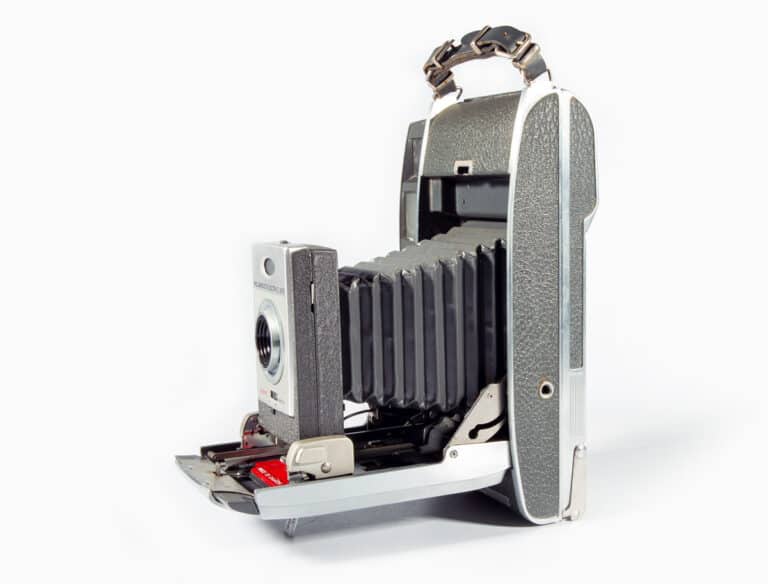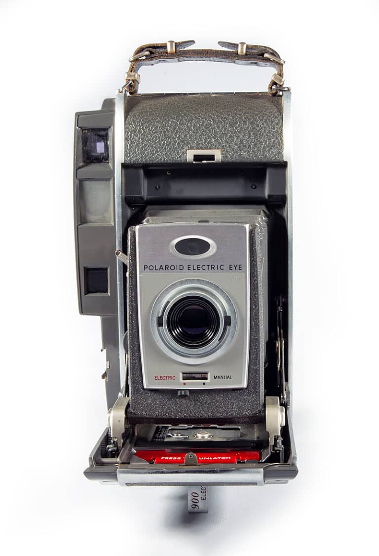 Aus dem Katalog von 1962: Spezial-Rollfilmkamera für die Sofortfotografie; Bildformat 8,5 x 10,5 cm. Vollautomatische Steuerung bis zur Belichtungszeit von 1/1.000 Sekunde und Blende (8 bis 82). Das neuartige Mikroauge ist so empfindlich, dass es sogar noch Kerzenlicht ausmisst. Eingebauter, gekuppelter Entfernungsmesser. Mit dem Spezialfilm, der bereits die erforderlichen Chemikalien für die Weiterverarbeitung in nicht flüssiger Form enthält, erhält man in zehn Sekunden fertige Papierpositive, die man der Kamera entnehmen kann (eine Dunkelkammerarbeit fällt hier weg). Ohne dass man Negative im herkömmlichen Sinn erhält, ist doch die Anfertigung von weiteren Bildern nach einem Original möglich.