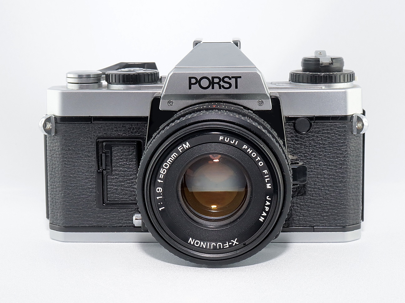 Details: Silberbeschichteter Prismenreflexsucher mit Mikroprismen und Schnittbild-Indikator zur exakten Scharfeinstellung, Leuchtdiodenanzeige der eingestellten Verschlusszeit, Signale für Unter- und Überbelichtung sowie Batteriekontrolle. CdS-Belichtungsmessung durchs Objektiv, mittenbetonte Integralmessung, Offenblend-Messsystem, Zeitautomatik mit Blendenvorwahl, Messwertspeicherung, Filmempfindlichkeit 15-36 DIN (12-3.200 ASA). Elektronisch gesteuerter Schlitzverschluss mit B sowie automatischer Zeiteinstellung von 1/2 bis 1/1.000 Sekunde; blitzsynchronisiert bei 1/60 Sekunde, elektronischer Selbstauslöser mit Akustik-Signal (12 Sekunden Vorlaufzeit). Elektromagnetischer Auslöser mit Drahtauslöseranschluss, Stativgewinde, automatisches Bildzählwerk, Tiefenschärfe-Kontrollknopf, Mehrfachbelichtung möglich, Aufsteckschuh mit X-Kontakt und Kontakten für Fuji-Automatikblitze, auswechselbare Rückwand mit Filmsichtfenster.