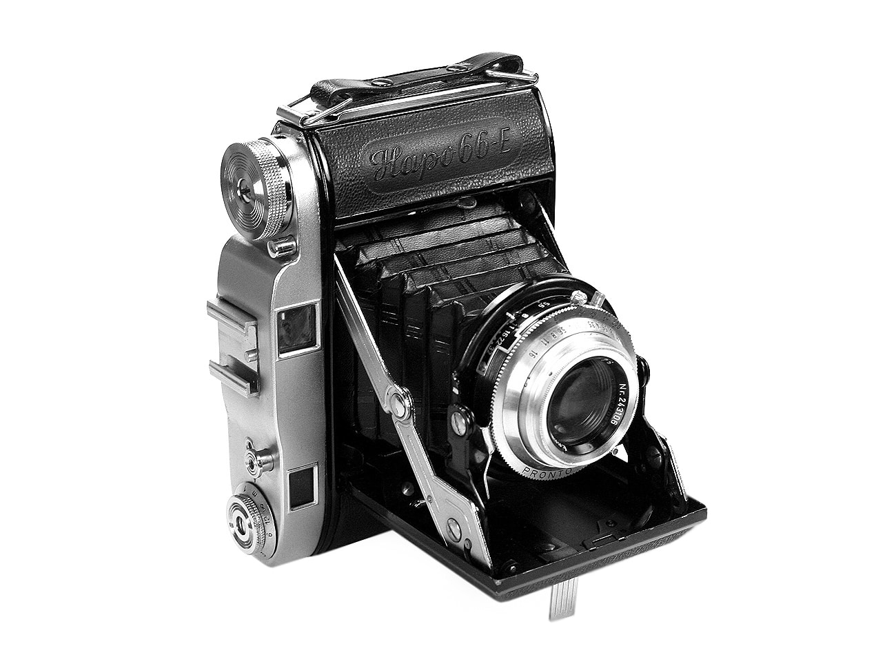 Sucherkamera (1953) für den Rollfilm 120/620/B2 (Aufnahmeformat: 6 x 6 cm). Klapp-/Springkonstruktion, manuelle Schärfeeinstellung, mechanischer Pronto-Zentralverschluss (B, 1/25 bis 1/200 Sekunde). Manuelle Belichtungssteuerung, eingebauter, aber nicht gekuppelter Entfernungsmesser (das „E“ im Namen). Zählwerk zusätzlich zum üblichen Filmfenster auf der Rückseite. Gehäuseauslöser, Objektiv: Enna Haponar 1:3,5/75 mm, es gab dieses Modell aber auch mit dem Haponar 1:4,5.