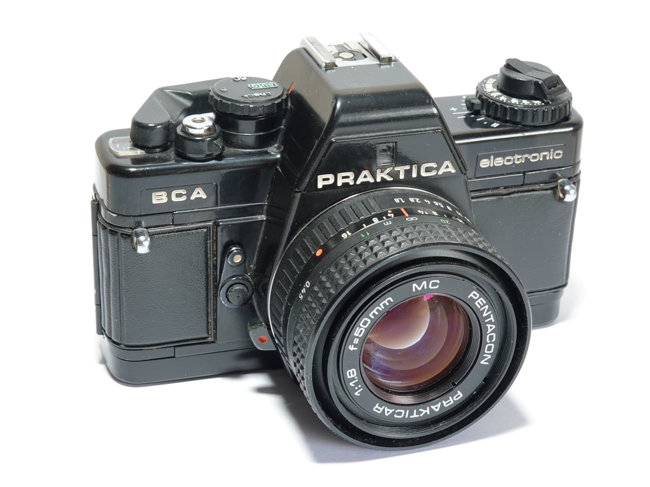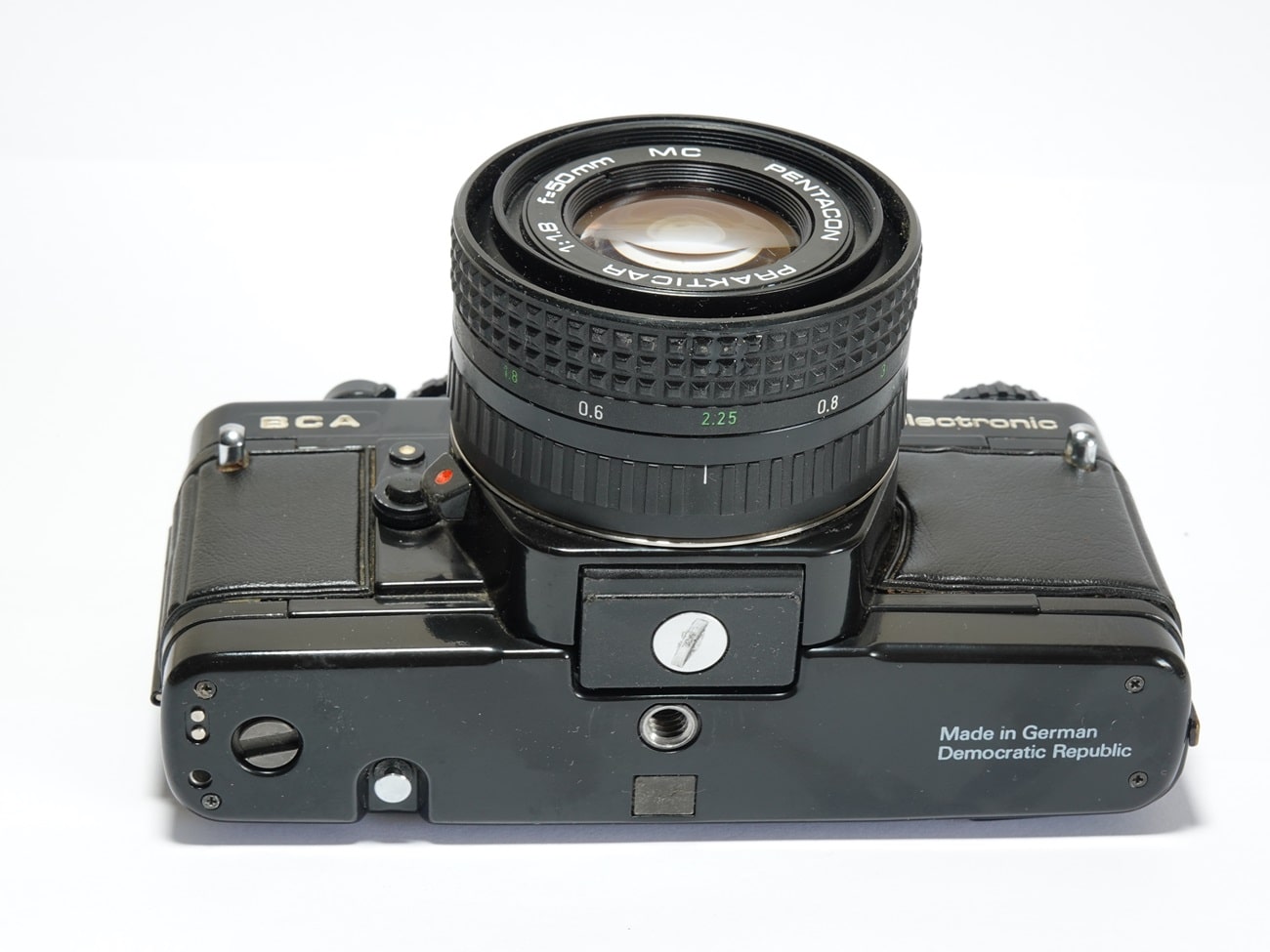 Einäugige Spiegelreflexkamera (SLR) für den Kleinbildfilm 135 (Aufnahmeformat 24 x 36 mm), hergestellt von 1986 bis 1989 in der DDR (228 nach der Einteilung von Richard Hummel). Für Wechselobjektive mit Praktica B-Bajonett (M-42 über Adapter); hier mit Pentacon Prakticar 1:1,8/50 mm MC. Prismensucher; Sucherinformation: doppelter, diagonal angeordneter Schnittbildentfernungsmesser, Mikroprismenring, LED-Anzeige in zwei Stufen für Verschlusszeit (länger als 1/60 Sekunde, kürzer als 1/60 Sekunde), Über- und Unterbelichtungswarnung, Batteriekontrolle. Elektronisch gesteuerter, vertikal ablaufender Metalllamellenschlitzverschluss (B, 1 bis 1/1.000 Sekunde; mechanisch gesteuerte Notzeit 1/60 Sekunde; mechanischer Selbstauslöser); Belichtungsmessung: mittenbetonte integrale TTL-Messung über CdS-Zelle, Offenblendenmessung; Zeitautomatik nach Blendenvorwahl. Filmempfindlichkeitsbereich: ASA 12-3.200; Blitzanschluss: automatische Umschaltung auf Synchronisationszeit bei Erreichen der Blitzbereitschaft mit entsprechendem Blitzgerät; Blitzsynchronzeit: 1/60 Sekunde. Sonstiges: Drahtauslöseranschluss, Winderanschluss, Korrekturfaktoren im Bereich von +/- 2 Blendenstufen in halben Stufen. Energiequelle: 1 x 6-Volt-Batterie (PX 28 oder 4 LR 44).