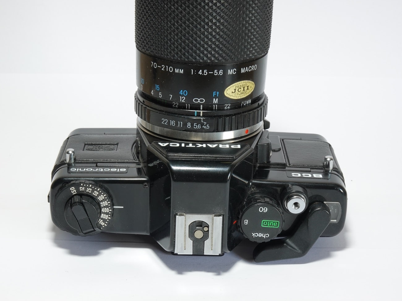 Einäugige Spiegelreflexkamera (SLR) für den Kleinbildfilm 135 (Aufnahmeformat 24 x 36 mm), hergestellt von 1989 bis 1990 in der DDR (231 nach Richard Hummel). Für Wechselobjektive mit Prakticar-Bajonett, hier mit Prakticar Auto-Zoom 1:4,5-5,6/70-210 mm Multi-Coated Macro; manuelle Fokussierung. Prismensucher; Sucherbildinformationen: Belichtungsbereichsanzeige (verschiedenfarbige LED), Warnung vor Über-/Unterbelichtung, Blitzbereitschaftsanzeige (grüne Leuchtdiode), Batteriekontrolle; Bildeinstellsystem: Fresnellinse mit diagonal angeordnetem Tripelmesskeil, Monoplanraster und Mattring. Sucherbildgröße: etwa 95 Prozent der Bildseiten. Elektronisch gesteuerter Metalllamellenschlitzverschluss (B, 1 bis 1/1.000 Sekunde); Blendenvorwahl und Zeitautomatik (im Sucher: grüne Leuchtdiode = 1/1.000 bis 1/60 Sekunde; gelbe Leuchtdiode = 1/30 bis eine Sekunde). Synchronisation von Elektronenblitzgeräten über Mittenkontakt im Steckschuh: Einstellung bei „60“, für systemkonforme Blitzgeräte mit einem Zusatzkontakt: Meldung der Blitzbereitschaft im Sucherbild und gleichzeitig elektronische Umschaltung bei „auto“ auf die Synchronzeit. Kein Selbstauslöser, kein Anschluss für Motoraufzug (Winder).