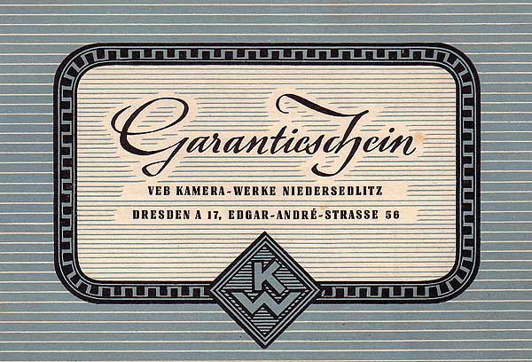 Einäugige Spiegelreflexkamera (SLR) für den Kleinbildfilm 135 (Aufnahmeformat 24 x 36 mm), hergestellt 1958 und 1959 in der DDR bei VEB Kamera-Werke/Pentacon (K. W. Kamerawerkstätten Guthe & Thorsch). Für Wechselobjektive mit Schraubgewinde M 42, hier mit Carl Zeiss Jena Tessar 1:2,8/50 mm; manuelle Fokussierung. Wechselsucher, hier mit aufklappbarem Lichtschacht. Mechanischer Schlitzverschluss (B, 1/2 bis 1/500 Sekunde); manuelle Belichtungssteuerung. Zwei Blitzbuchsen (F und X).