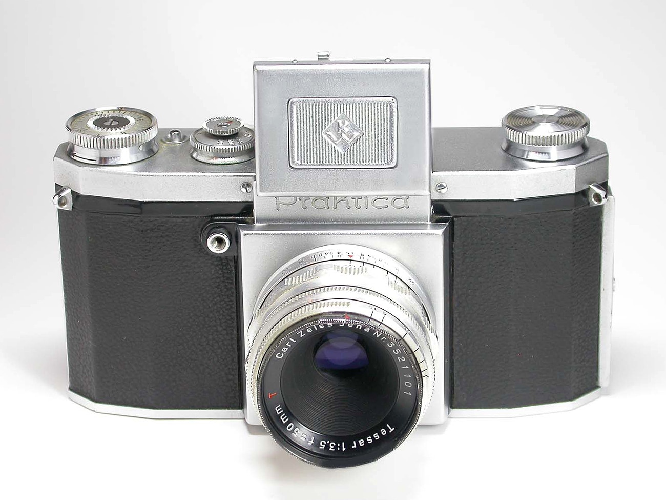 Einäugige Spiegelreflexkamera (SLR) für den Kleinbildfilm 135 (Aufnahmeformat 24 x 36 mm), hergestellt in der DDR bei K. W. Kamera-Werkstätten Guthe & Thorsch (ab 1937 Inhaber: Ch. A. Noble, ab 1948 VEB Kamera-Werke, ab 1959 VEB Pentacon, Dresden); Bauzeit von 1950 bis 1951. Für Wechselobjektive mit M-42-Schraubgewinde, hier mit dem Zeiss Jena Tessar 1:3,5/50 mm; manuelle Fokussierung. Lichtschachtsucher mit ausklappbarer Lupe. Mechanischer Schlitzverschluss (B, 1/2 bis 1/500 Sekunde); kein Blitzkontakt.