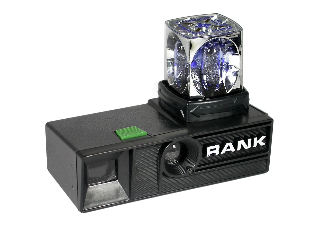 Eine außergewöhnliche Pocketkamera für den Pocketfilm 110 (Aufnahmeformat 13 x 17 mm), produziert in den USA für „Rank Audio Visual, Brentford, Middlesex, England“ (Aufdruck auf der Kamera). Das war damals ein großer Filmproduzent, dem auch 650 britische Kinos gehörten. Das patentierte Gerät ist eine Einwegkamera, wie sie als Pocketkamera eher selten ist. Wenn der Film voll war, schickte man die Kamera zusammen mit einem Scheck über 3,45 Englische Pfund an die „Rankolor Laboratories“ in Brentford und bekam mit dem entwickelten Film und den vergrößerten Fotos eine neue, geladene Pocketkamera zurück. Der Filmtransport erfolgt durch Drehen des Sockels für den X-Blitzwürfel. Technische Daten: Lichtstärke 1:11, Verschlusszeit: 1/80 Sekunde. Doppelbelichtungssperre.