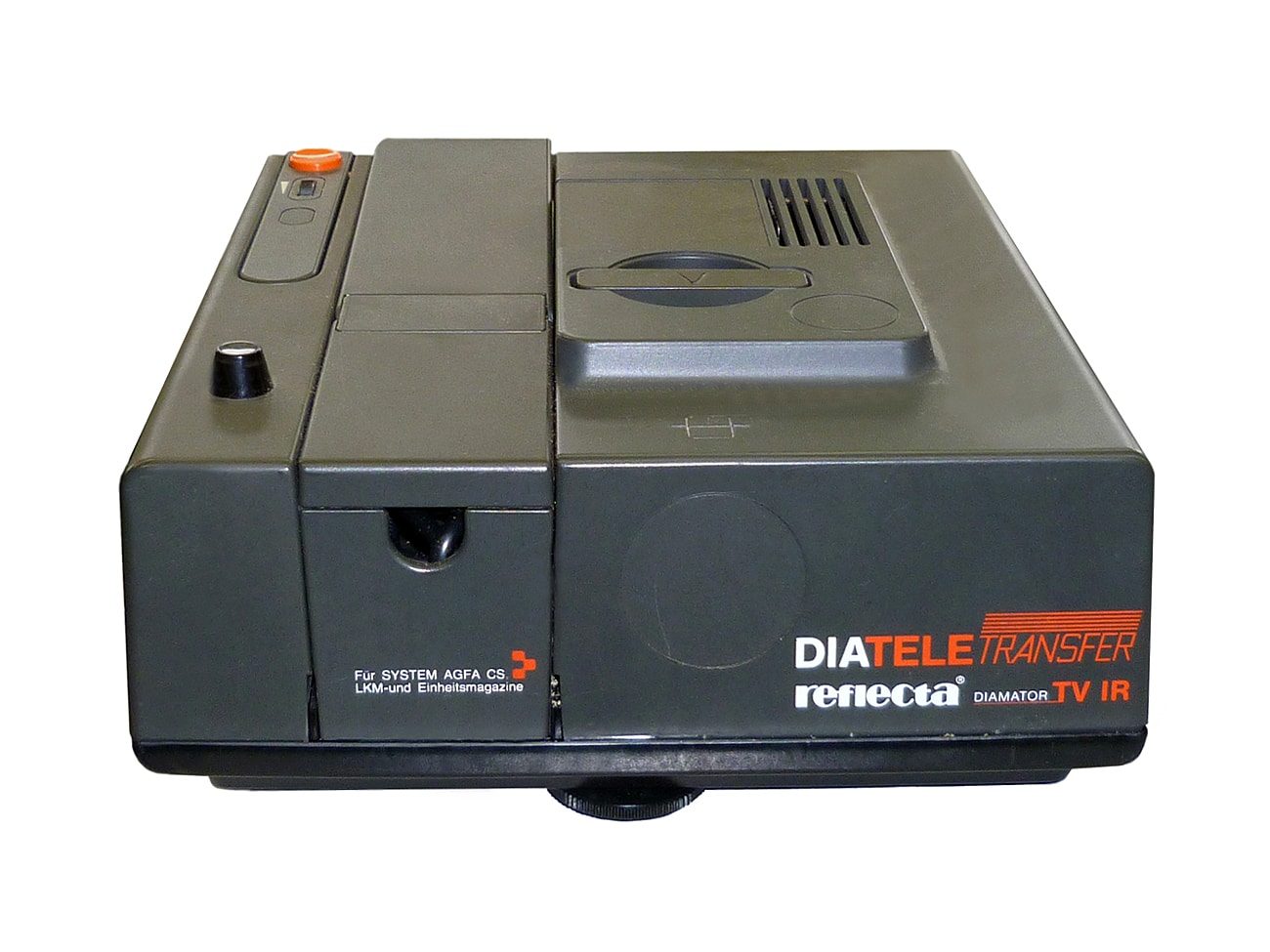 Diascanner zur Wiedergabe von Kleinbilddias auf dem Fernsehgerät – also für diejenigen Benutzer, die sich das Aufstellen einer Leinwand ersparen wollten. 1/2-Zoll-CCD-Sensor mit 600 x 249 Pixel. Der Apparat in Form eines üblichen Kleinbild-Diaprojektors kann Einzeldias oder Dias in Magazinen mittels CCD-Sensor abtasten (scannen) und auf einem Fernseher mit analoger FBAS-Signal-Verarbeitung darstellen. Weiterhin kann das Diasignal auch mit einem Video-Recorder aufgezeichnet werden. Das PAL-Farbbild hat 50 Teilbilder pro Sekunde. Lampe: Halogen 12 Volt/5 Watt. Für Magazine Agfa-CS-, LKM- und Einheitsmagazine. Es wurde neben dem Modell mit drahtgebundener Fernbedienung auch – unser Bild – eine Variante mit Infrarot-Fernbedienung angeboten.