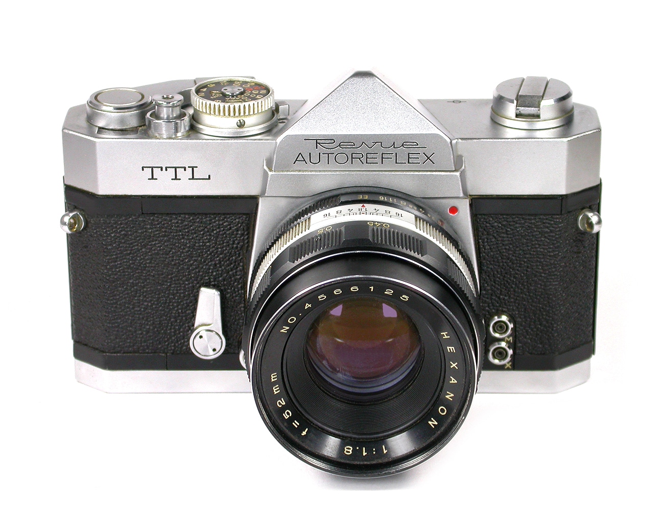 Die Revue Autoreflex TTL ist bis auf die Beschriftung mit der Konica Autoreflex T identisch.