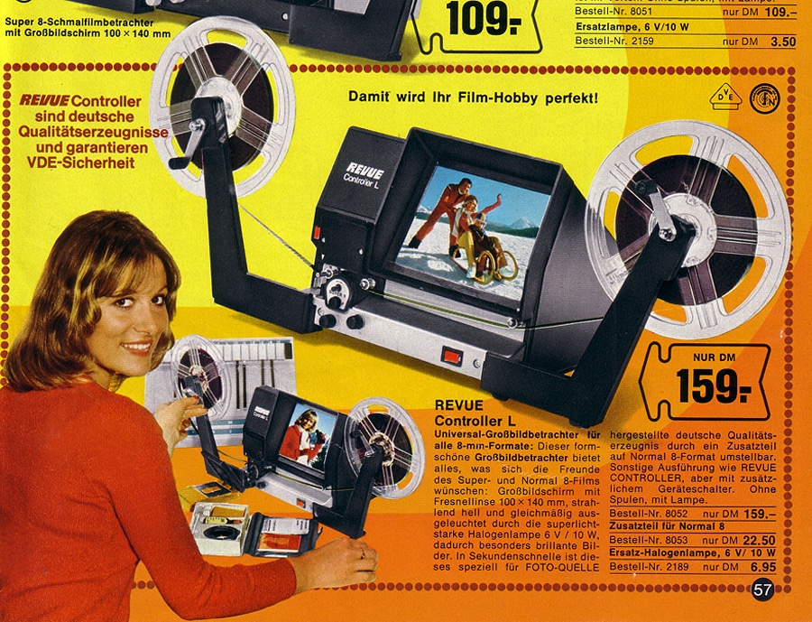 Diese Abbildung stammt aus dem Foto-Quelle-Katalog Winter/Frühjahr 1975/1976. Revue Controller werden hier als „deutsche Qualitätserzeugnisse“ angeboten – ob die Fertigung in der Bundesrepublik oder in der DDR erfolgte, bleibt damit aber offen.