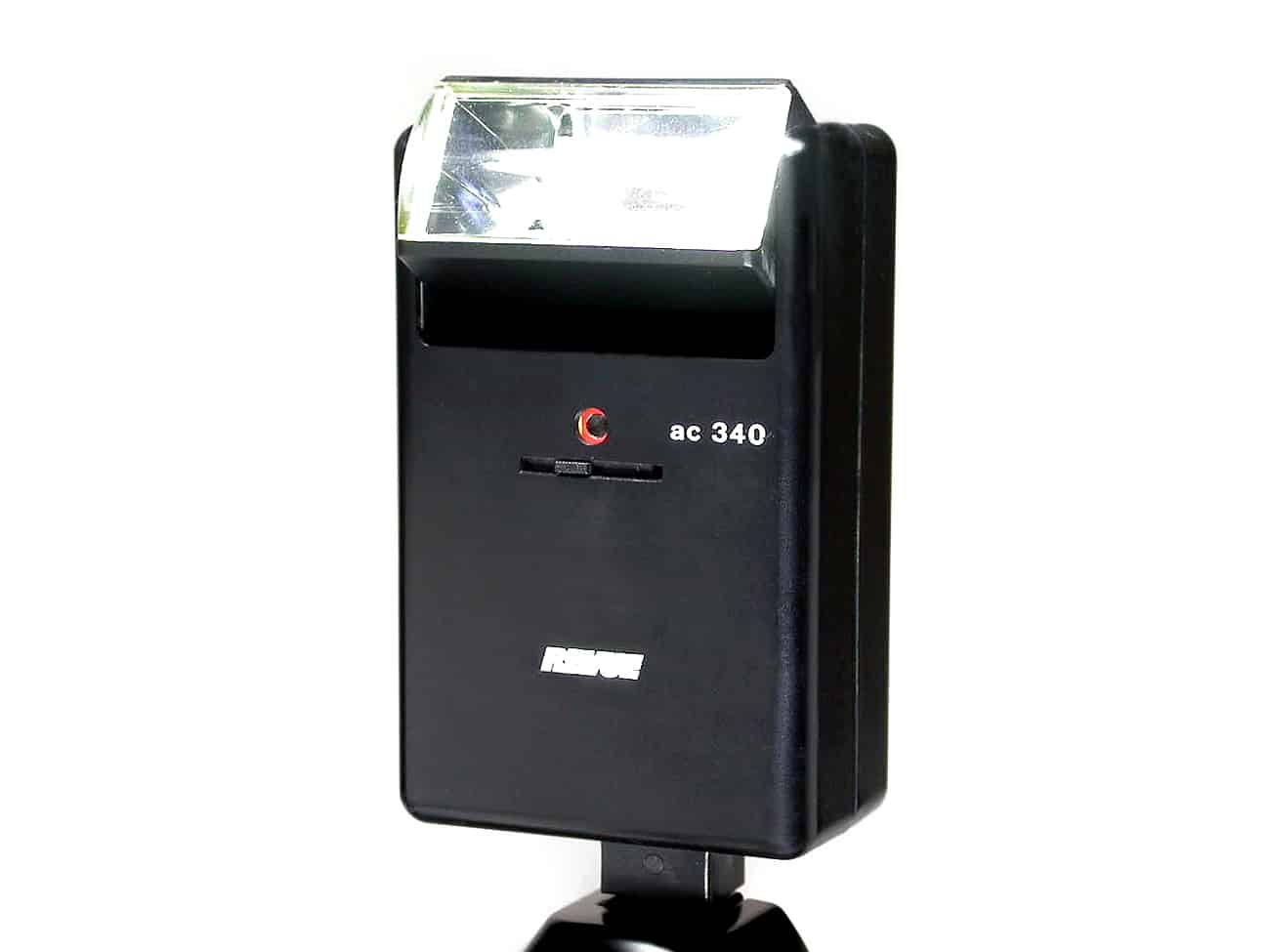 Computerblitzgerät mit Seriencomputer (Thyristor), Made in Germany, im Vertrieb von Revue (Foto-Quelle Artikel Nr. 2564) in den 1970er Jahren. Arbeitsblenden 4 (1,2-8,5 Meter), 8 (0,5-4,2 Meter) und 16 (0,4-2,1 Meter); auch manueller Betrieb mittels Blendenrechner auf der Rückseite möglich. Schwenkreflektor (bis 90 Grad, dazwischen mit Raststellungen, auch um 30 Grad nach unten schwenkbar), Ausleuchtwinkel 45 x 60 Grad; Leitzahl 34 bei 21 DIN/100 ASA. Mittenkontakt und Kabelanschluss. Blitzbereitschaftsanzeige, Handauslöser. Blitzdauer 1/300 bis 1/25.000 Sekunde; Blitzfolgezeit 0,5 bis 6 Sekunden. Stromversorgung: eingebauter Akku (50 bis 850 Blitze pro Akkuladung möglich); separates Netz-/Ladegerät.