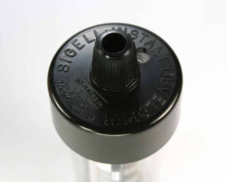 Ein ziemlich unbekanntes Gerät aus der Laborsparte: die „Schnellentwicklungsdose 20“ von Revue (Foto-Quelle) für Kleinbildfilme mit 20 Aufnahmen, hergestellt Ende der 1960er Jahre in Tokio/Japan unter der Bezeichnung „Sigell Instant Developer“. Der Film bleibt in der Originalpatrone und wird mit einem speziellen Einbadentwickler verarbeitet.