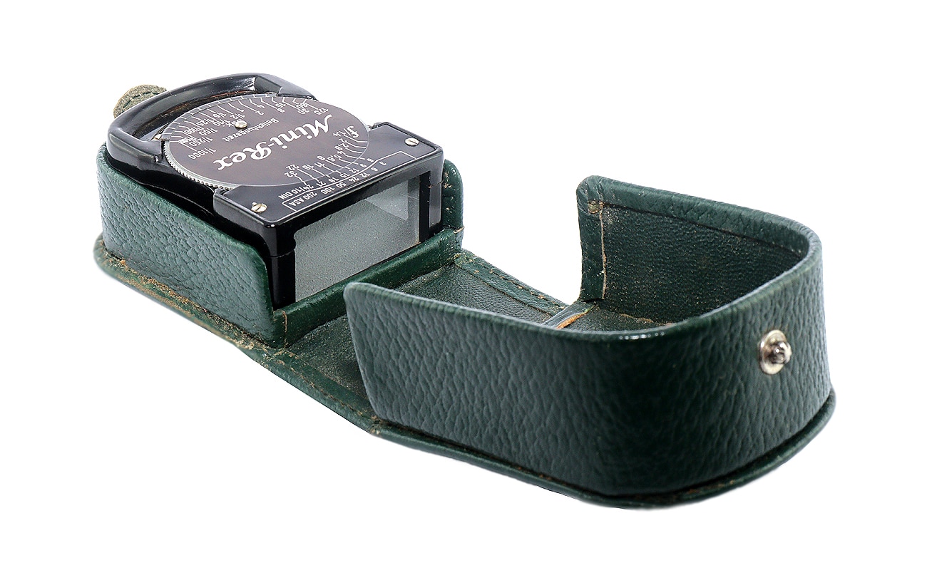 Dieser Mini-Rex aus dem Jahre 1937 begründete die Erfolgsgeschichte der Rex-Belichtungsmesser aus München, vor allem nach Kriegsende, nachdem Rex seine Produktionsstätte in die „Messgerätestadt Erlangen“ (Gossen, Metrawatt) verlegt hatte. Einhandbedienung; im Museum mit grünem Leder-Etui.