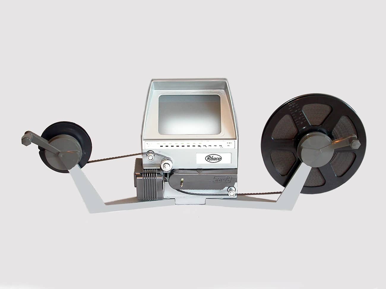 Filmbetrachtungsgerät für 8-mm-Film oder Super-8-Film, hergestellt in den 1960er Jahren in Frankreich. Lampe: 6 Volt/6 Watt, eingebautes Netzteil (120/240 Volt). Manueller Filmtransport; der Film konnte auch per Stanze zum Schneiden markiert werden.