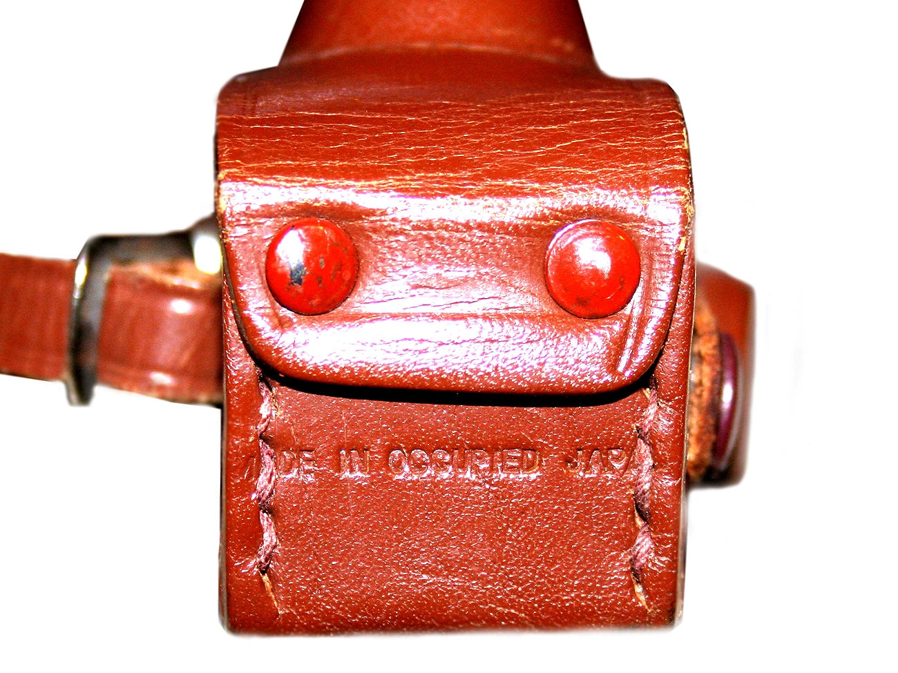 Interessant auch am Museumsmodell: die Prägung „Made in Occupied Japan“ auf der Ledertasche. Dieser Hinweis soll noch bis 1955 auf Industrieerzeugnissen verwendet worden sein, obwohl die Besetzung Japans durch die Amerikaner offiziell 1952 endete. Es handelt sich also offensichtlich um ein frühes Modell der Steky III.
