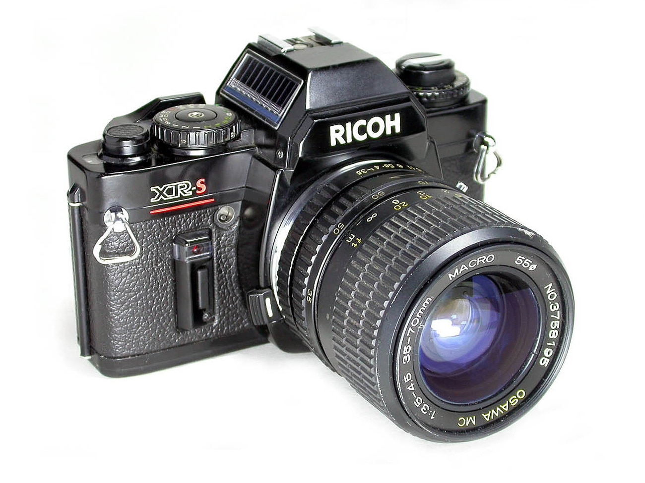 Einäugige Spiegelreflexkamera (SLR) für den Kleinbildfilm 135 (Aufnahmeformat 24 x 36mm), hergestellt in Japan ab 1981. Eine interessante Variation: Die Solarpaneele (daher das „S“ im Modellnamen) links und rechts des Sucherprismas sollten die Batterie wieder aufladen. Auf dem Prisma war noch ein kleiner entsprechender Hinweis abgedruckt, der bei dem Museumsexemplar wohl im Laufe der Jahre abgeblättert ist und deshalb ganz weggeputzt wurde. Diese Stromversorgung durch Solarzellen war eine zeittypische technische Spielerei, die sich in der Praxis nicht bewährte.