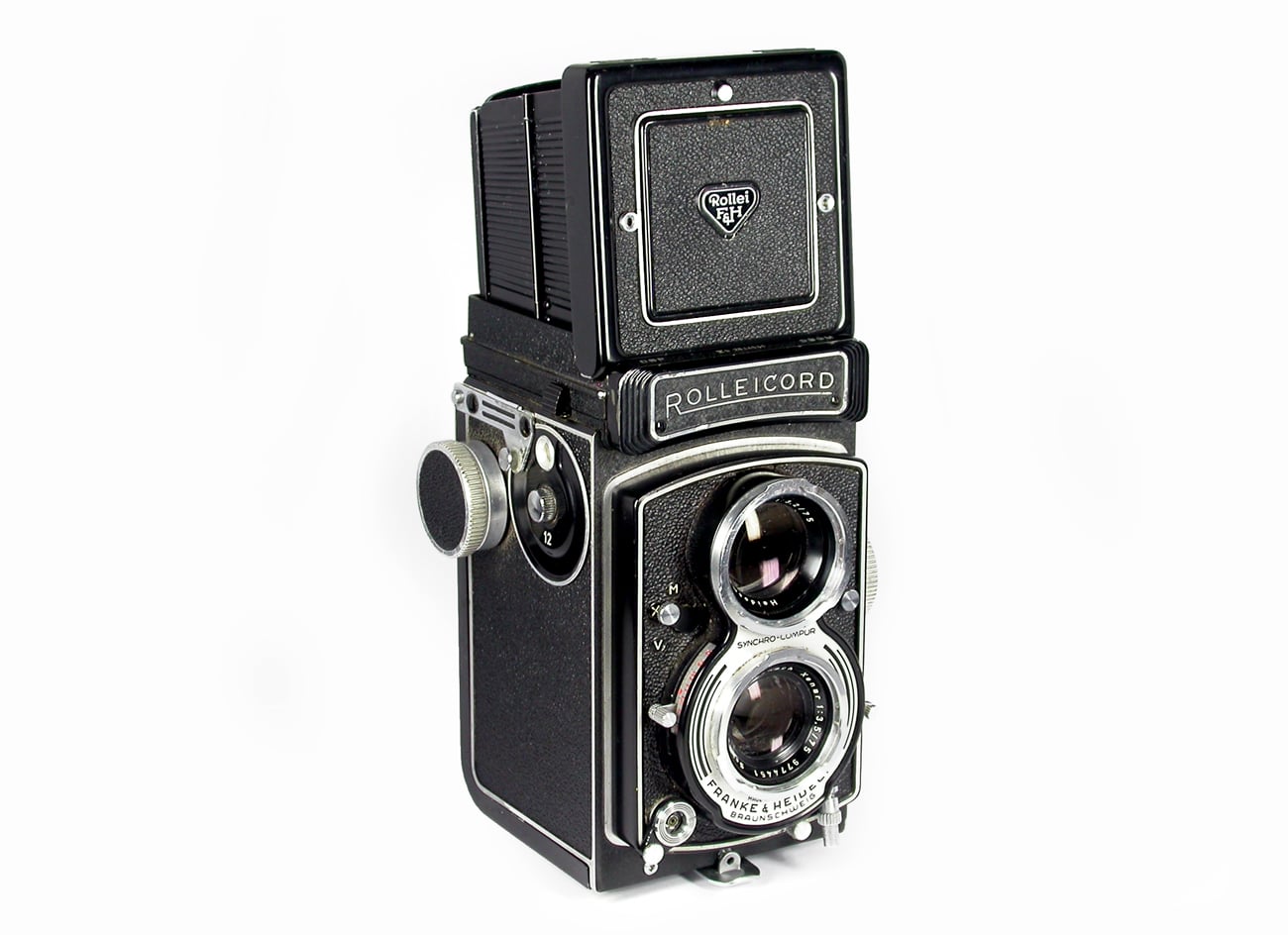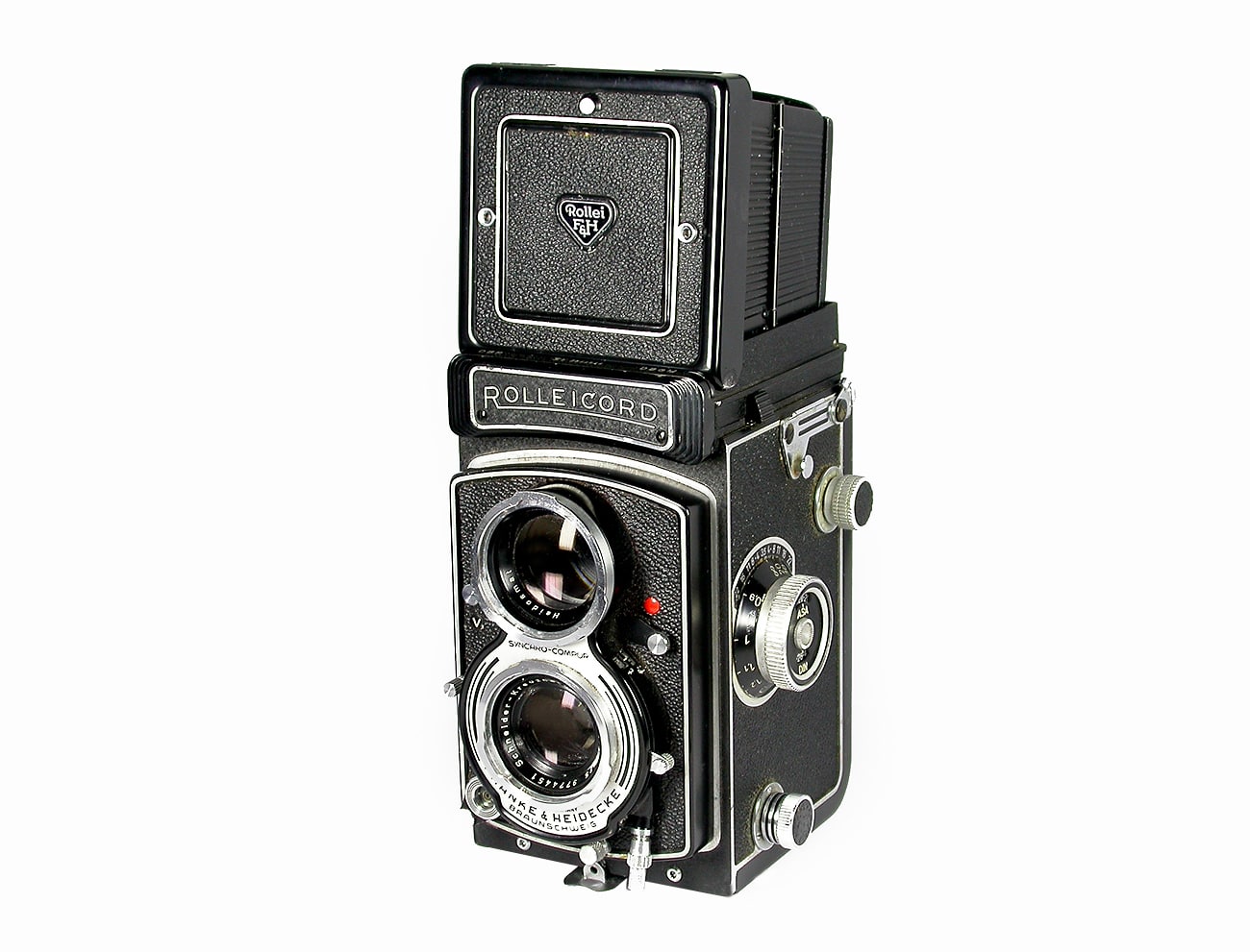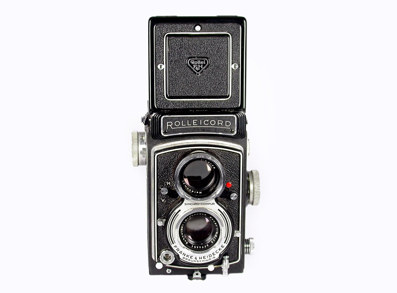 Zweiäugige Spiegelreflexkamera für den Rollfilm 120 (Negativformat 6 x 6 cm). „Die neue Rolleicord Vb unterscheidet sich vom früheren Modell Va durch den abnehmbaren Lichtschacht. Durch diese Neuerung lässt sich die Rolleicord nun auch mit dem Rollei-Penta-Prisma und dem Rollei-Projektionsansatz kombinieren. Die technische Ausstattung der Rolleicord Vb blieb unverändert: Schneider Xenar 1:3,5/75 mm, Synchro-Compur-Verschluss (B, 1-1/500 Sekunde), abschaltbare Doppelbelichtungssperre. Die Maskensätze 16 und 24 sind weiterhin verwendbar und geben die Möglichkeit, fünf verschiedene Aufnahmeformate (6 x 6 cm, 4 x 5,5 cm, 4 x 4 cm, 28 x 40 mm und 24 x 36 mm) in der gleichen Kamera zu benutzen. Preis: 438,- DM“ (Zitiert nach dem Prospekt von 1964). Dieses Modell wurde von 1962 bis 1975 gebaut.