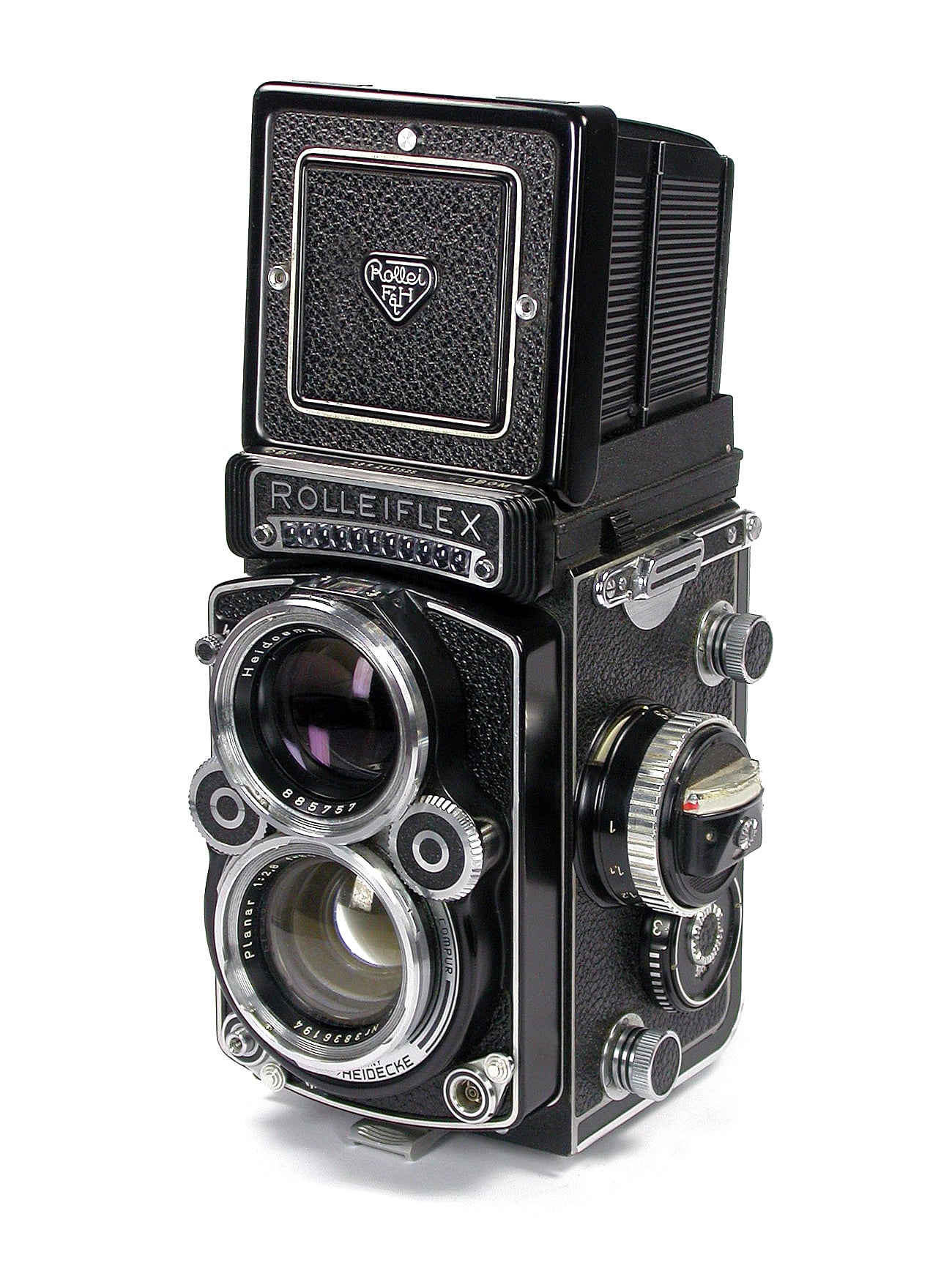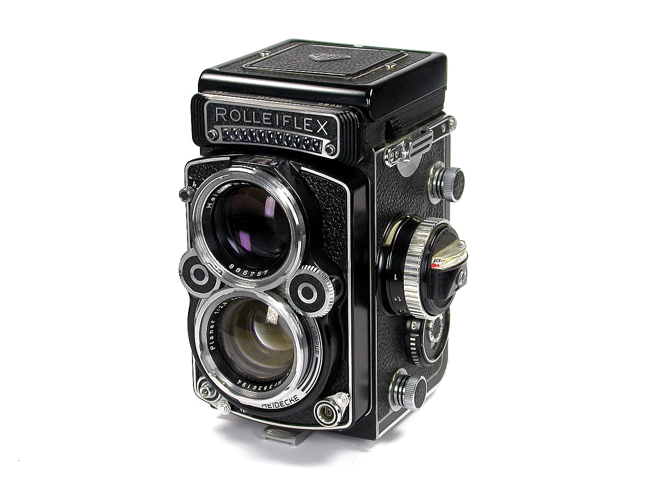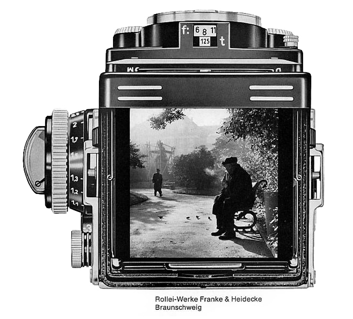 Zweiäugige Spiegelreflexkamera für 12 Aufnahmen 6 x 6 cm auf 120er Rollfilm. Werksumbau mit neuer Kurbel-Seitenwand mit 12/24er-Bildschaltung für 120er oder 220er Rollfilm möglich. Ab 1965 serienmäßig 12/24er-Bildschaltung für 120er oder 220er Rollfilm.