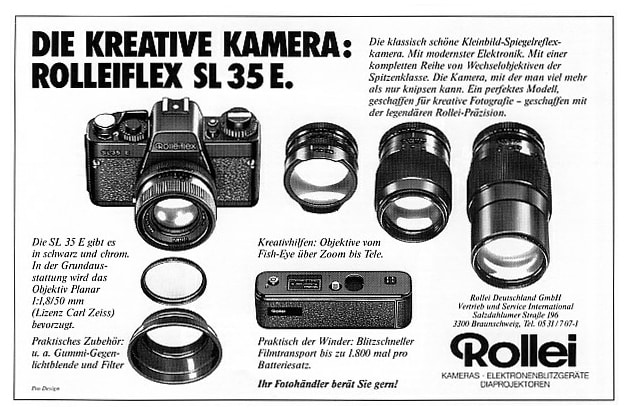KB-Spiegelreflexkamera, 1979 bis 1983. Rollei-QBM-Bajonettanschluss, M-42-Objektive über Adapter einsetzbar. Verfügbare Wechselobjektive: 15 mm bis 1000 mm Brennweite, das Museumsexemplar ist ausgestattet mit dem Standardobjektiv: Rollei-HFT Planar 1:1,8/50 mm (Bild). Elektronisch gesteuerter Metall-Schlitzverschluss B, 16 Sekunden bis 1/1.000 Sekunde, Selbstauslöser: 10 Sekunden Vorlaufzeit. Prismensucher mit Mikroprismen- und Schnittbild-Entfernungsmesser sowie eingeblendeter LED-Zeitenskala und Arbeitsblende. Belichtungsmessung durch das Objektiv. Zeitautomatik mit Blendenvorwahl oder wahlweise mit Belichtungsmesser gekuppelter und frei wählbarer Einstellung von Belichtungszeit und Blende. Empfindlichkeitsbereich ISO 25 bis ISO 6.400. Blitzschuh mit Mittenkontakt, Synchronzeit 1/125 Sekunde. Mehrfachbelichtungen möglich. Schnellschalthebel für verschlussgekuppelten Filmtransport. Batterie: 1 x Silberoxidbatterie 6 Volt (wie z.B. Mallory PX 28 oder Varta V 28 PX).