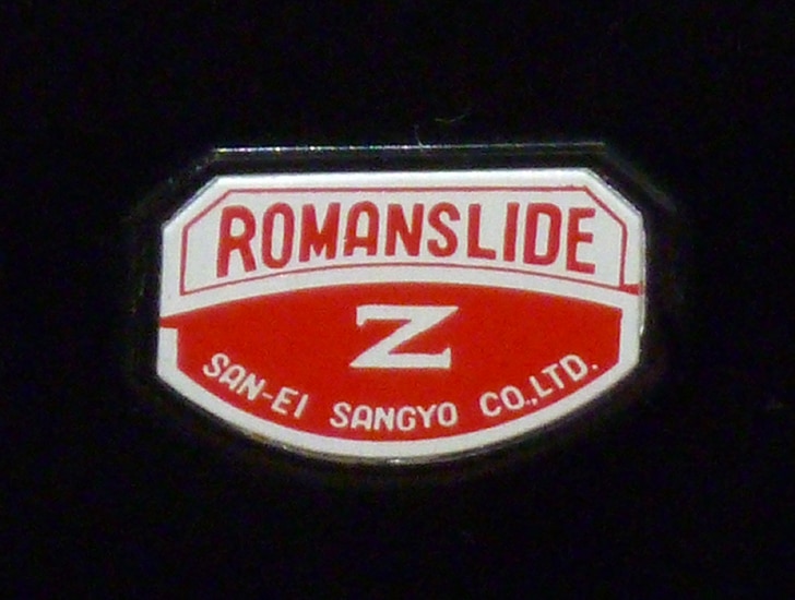 Seltener Diaprojektor aus Japan („SAN-EI SANGYO CO. LTD“, später Seiko), hergestellt etwa von 1952 bis 1955. Interessante Konstruktion mit schwarzem Bakelitgehäuse und einem Objektiv, das zum Transport nach hinten geklappt wird und somit komplett ohne Demontage im Deckel verschwindet. Wechselschieber für zwei Dia mit dem Rähmchenformat 5 x 5 cm; Netzanschluss.