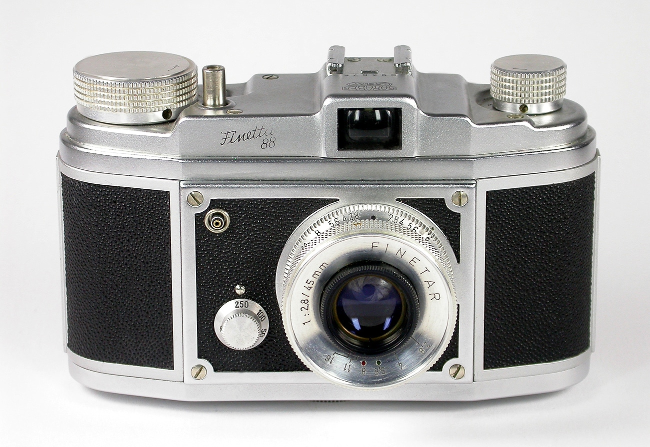 Sucherkamera (1953) für den Kleinbildfilm 135 (Aufnahmeformat 24 x 36 mm). Motorischer Filmtransport (bis zu 2 Bilder pro Sekunde mittels Federwerksaufzug). Manuelle Schärfeeinstellung, mechanischer Zentralverschluss bis 1/250 Sekunde, manuelle Belichtungssteuerung. Blitzanschluss: Mittenkontakt im Zubehörschuh. Wechselobjektive (hier mit Objektiv Finetar 1:2,8/45 mm).